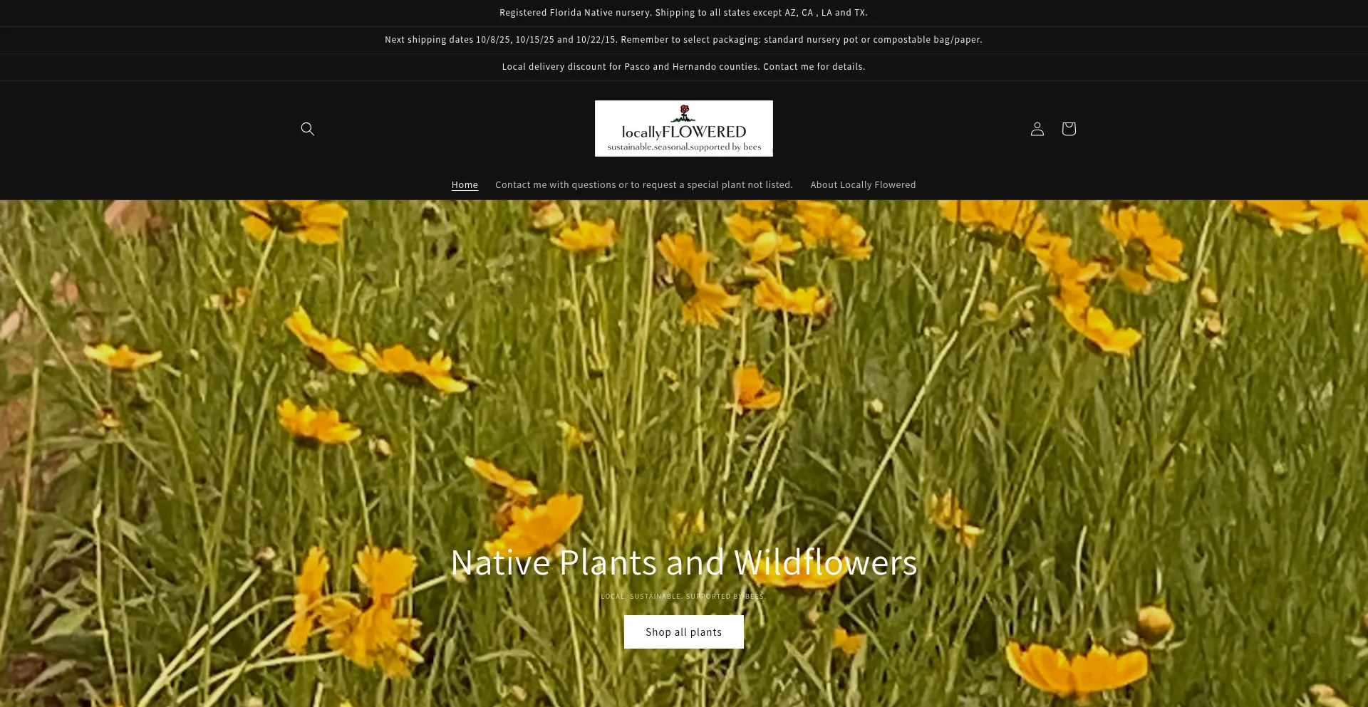 Join the movement to rewild our world. Locally Flowered is a nursery for wildflowers and native plants. We sell large, healthy, 1 gallon plants. Make a difference and plant native!