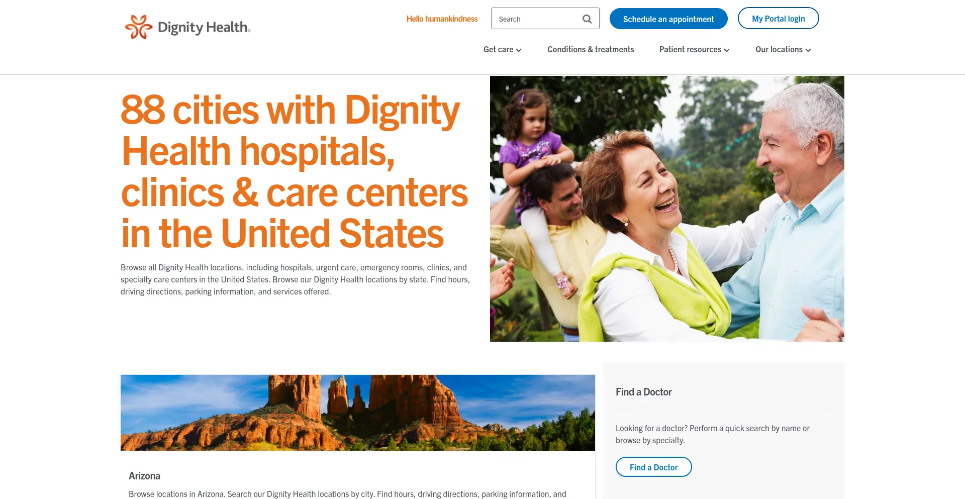 HTML分析表明 locations.dignityhealth.org 提供扩展数据,包括有关公司或其产品和服务的信息。这可能表明对透明度的承诺。
