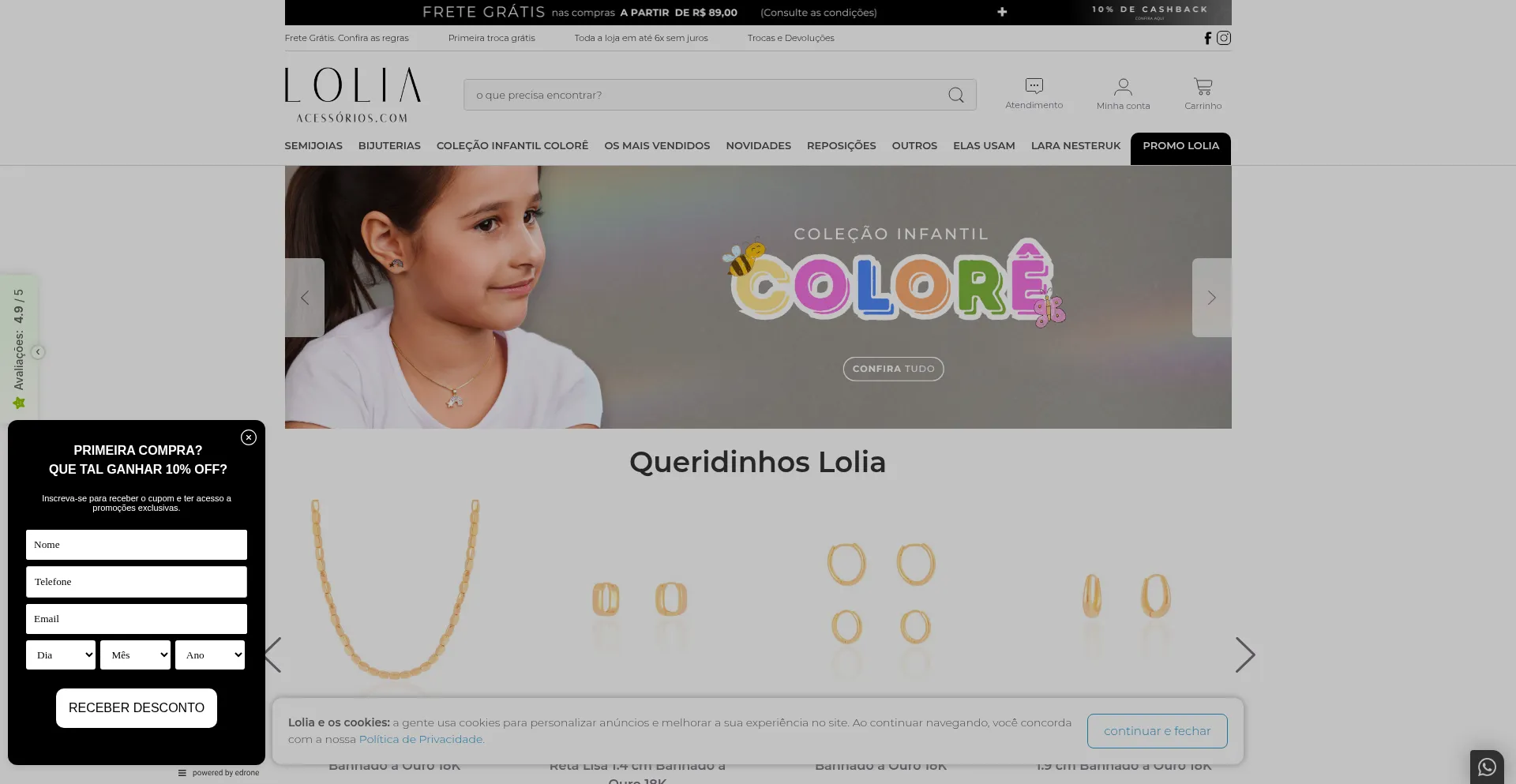 A LOLIA é uma marca de semijoias que oferece às mulheres toda a beleza das semijoias de uma maneira acessível. Amamos o que fazemos e esse amor está presente em todas as nos...