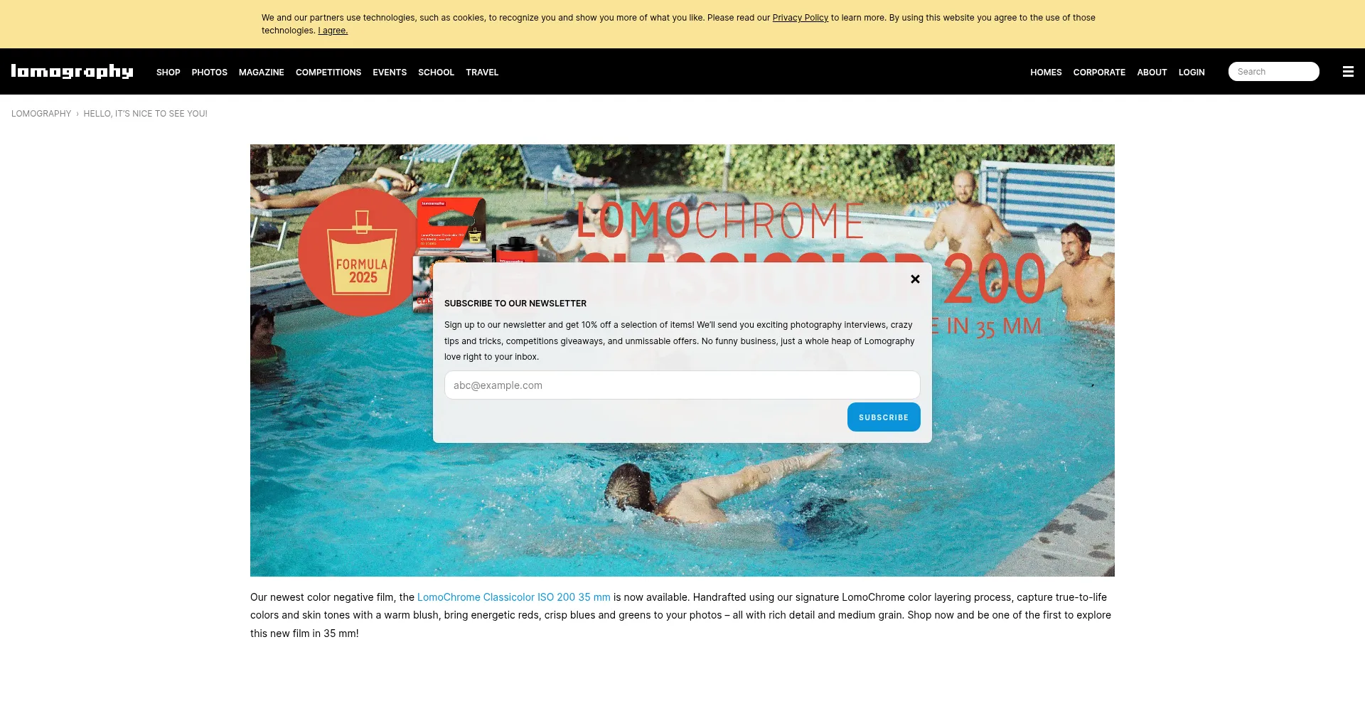 该网站实现数据收集表单,请求个人信息,包括姓名、电子邮件地址、电话号码或其他敏感详细信息。用户应验证 lomography.com 的合法性并在提交个人数据前查看隐私政策。