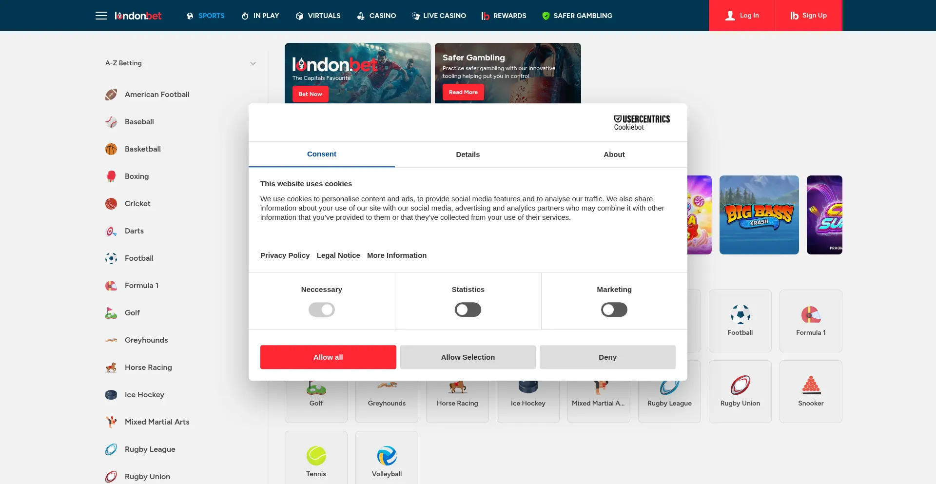 该网站实现符合GDPR或CCPA等隐私法规的cookie同意机制。这表明 london.bet 遵守数据保护标准并为用户提供对个人数据收集实践的控制。