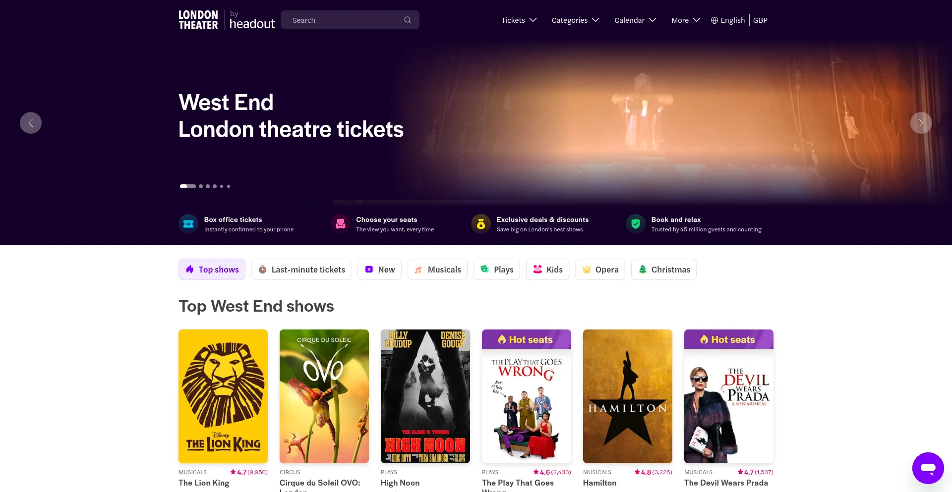 Enjoy award-winning theatre, musicals, and plays with London theatre tickets. Get last-minute bookings, preferred seating, and endless shows to choose from. Book now.