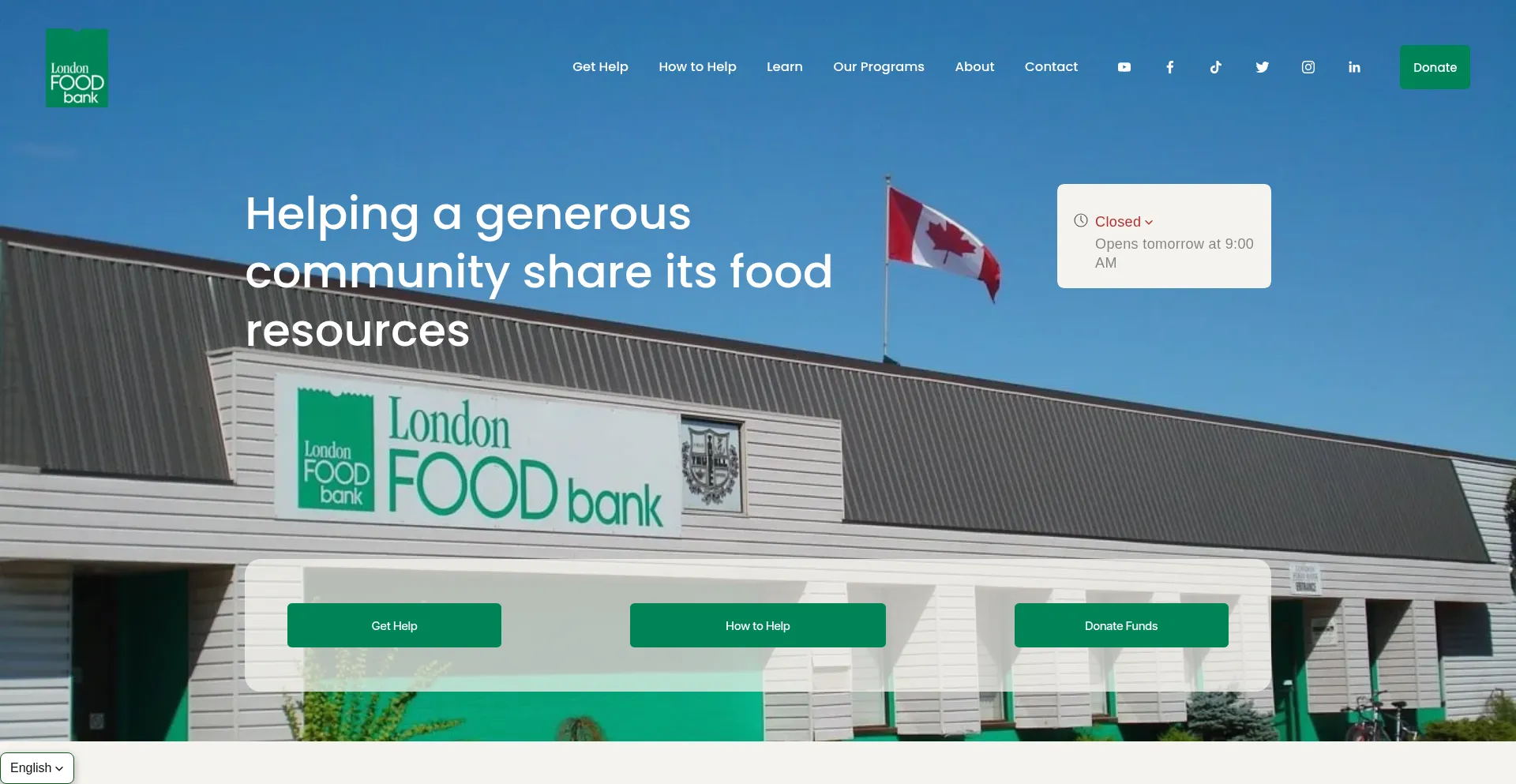 网站上存在社交媒体链接表明 londonfoodbank.ca 在社交媒体上维护官方账户,这是可信度和参与度的积极信号。