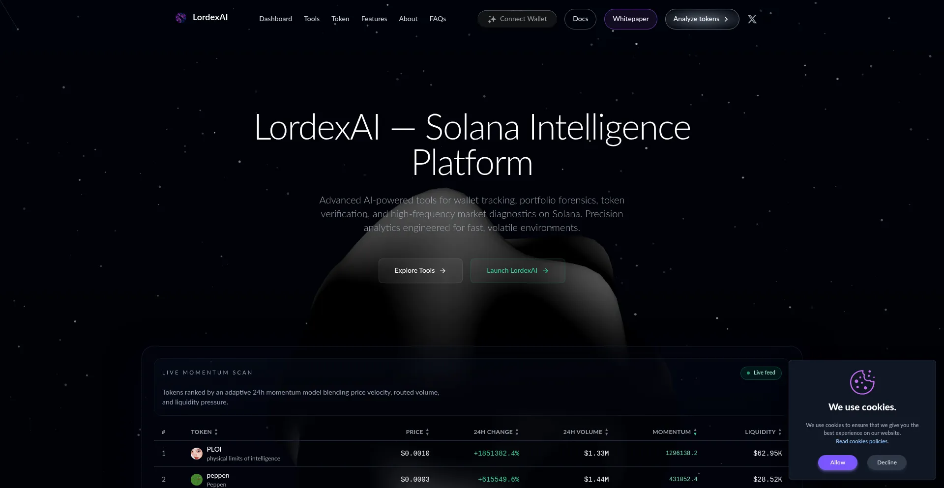 LordexAI — A premium AI-driven Solana intelligence platform for wallet analytics, token verification, portfolio breakdowns, risk scoring, and advanced market signals.