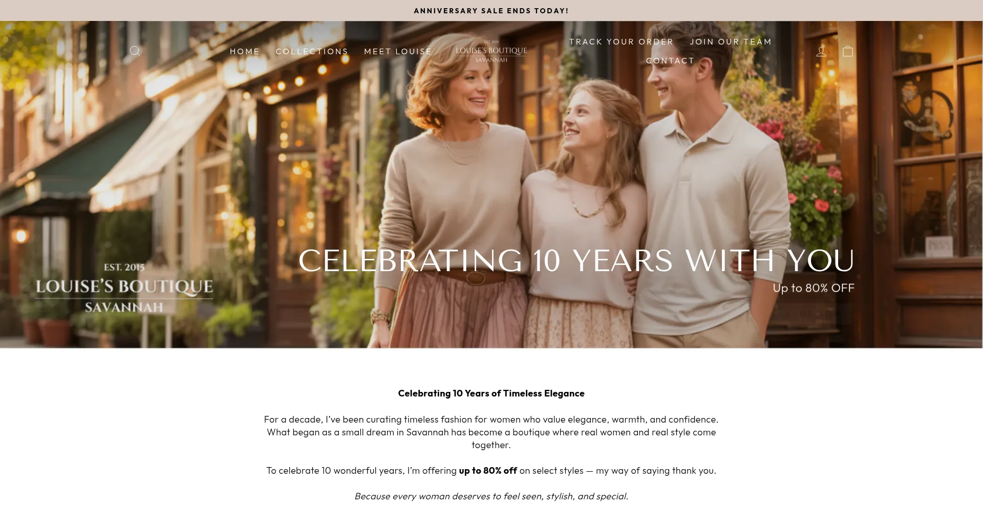 Discover timeless fashion at Louise’s Boutique Savannah — elegant, comfortable pieces designed for modern women. Shop our exclusive anniversary sale today.