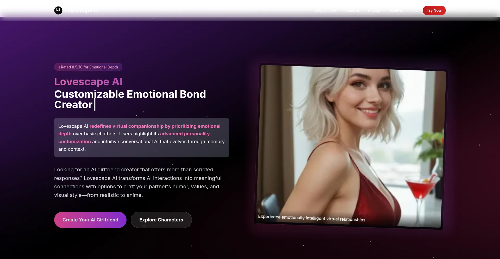 Discover Lovescape AI - Experience emotionally intelligent AI relationships with sophisticated emotional support, relationship evolution, and personal growth insights. Try our e...