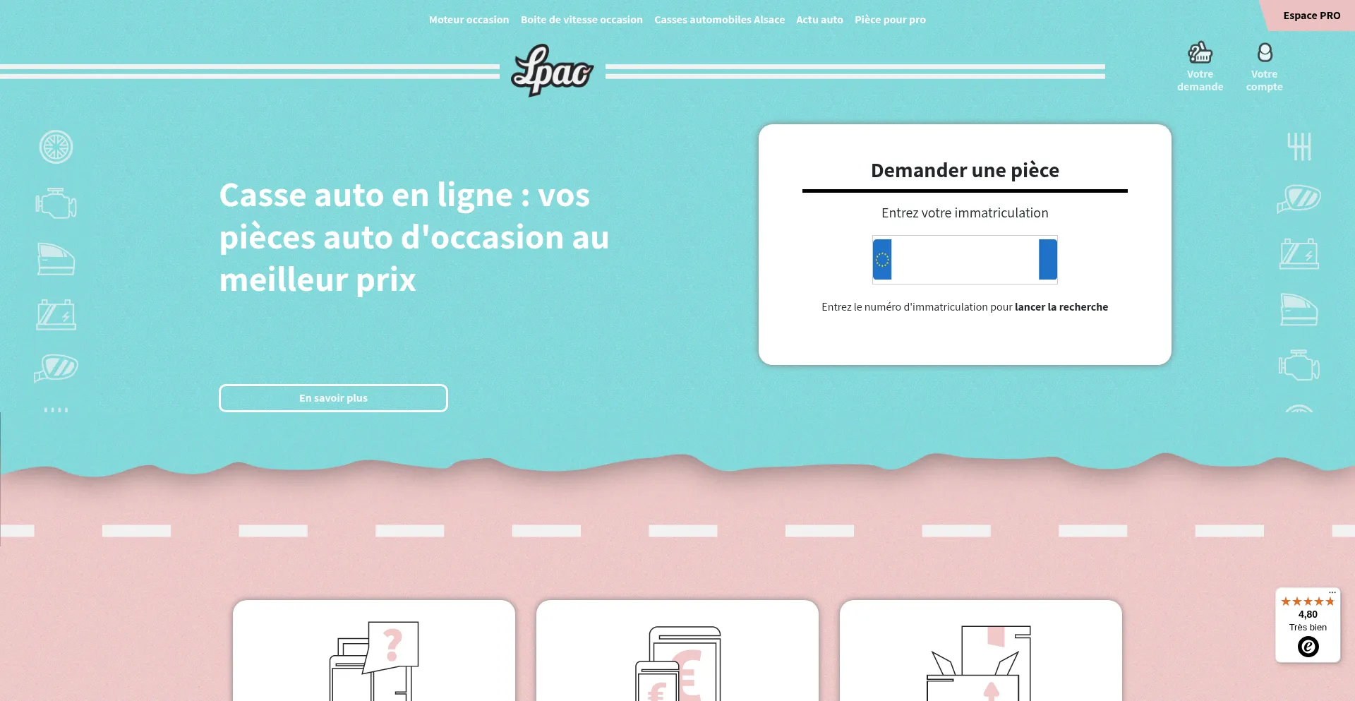 Toutes les pièces d'occasion pour votre auto à un prix défiant toute concurrence garanties 24 mois. Devis en ligne gratuit ! LPAO votre casse auto en ligne.
