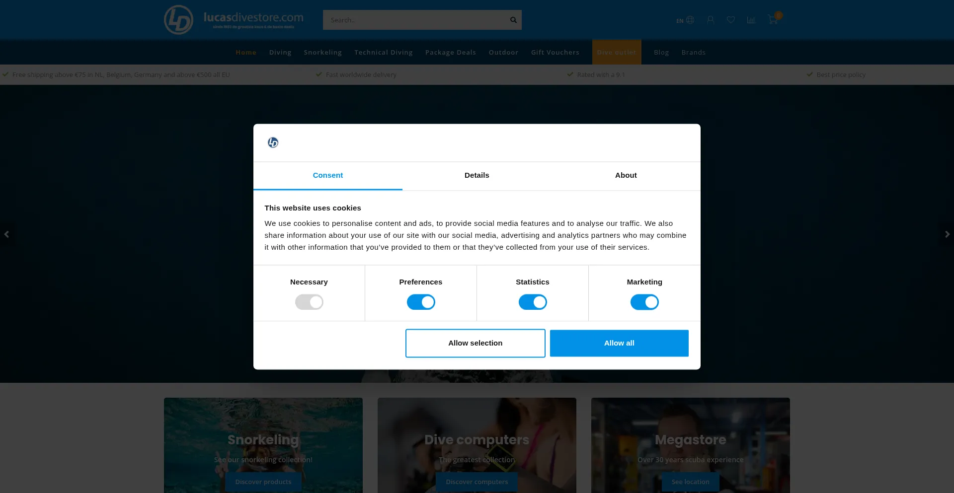 Lucas Divestore is the largest dive shop in Europe with more than 30 years of experience and the best deals. See our collection and order online!<br />