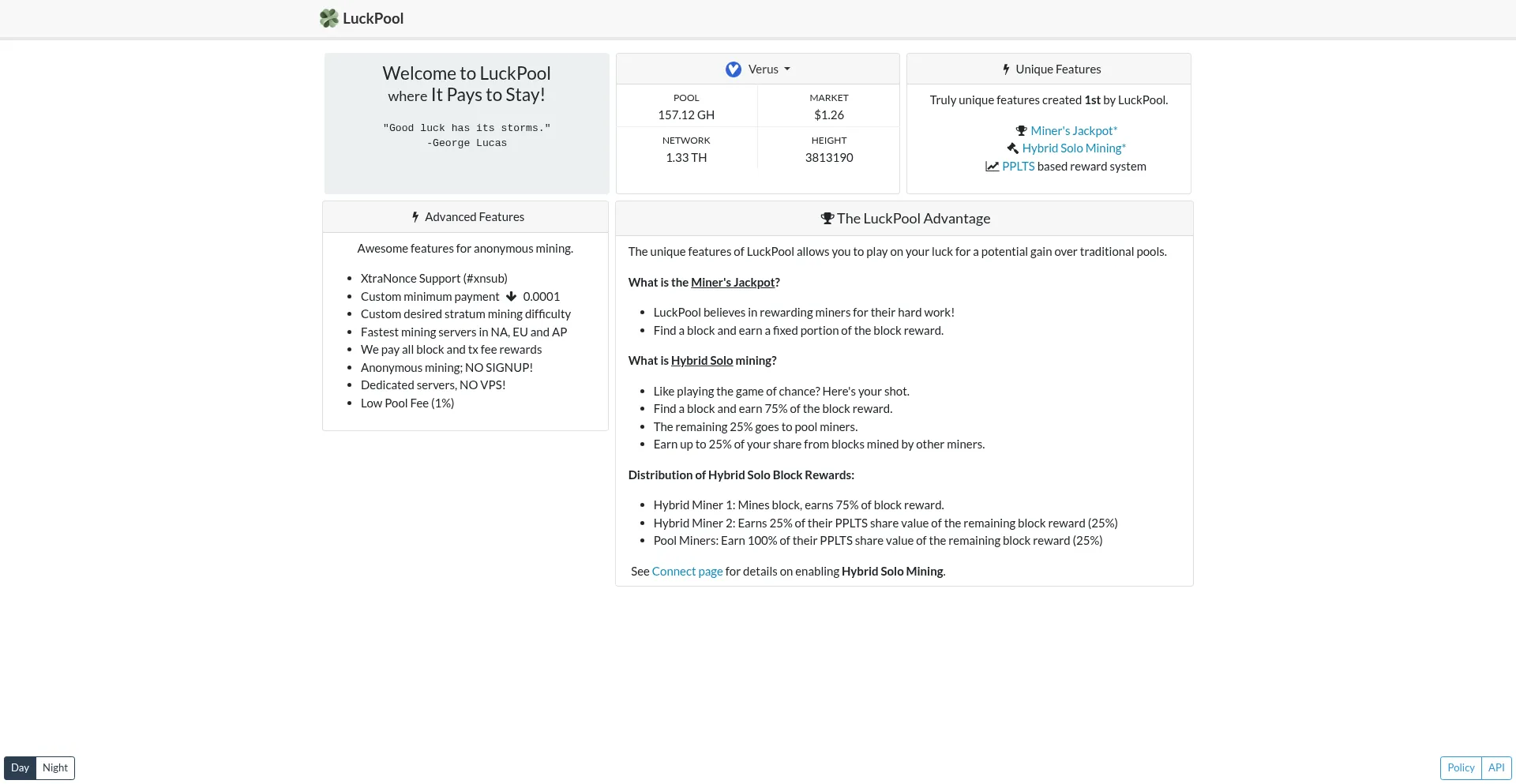 网站 luckpool.net 可能提供云挖矿服务或加密货币挖矿投资。一些平台提供合法的挖矿租赁服务,而其他平台可能使用虚假的挖矿仪表板来显示无法提取的虚拟收益。
