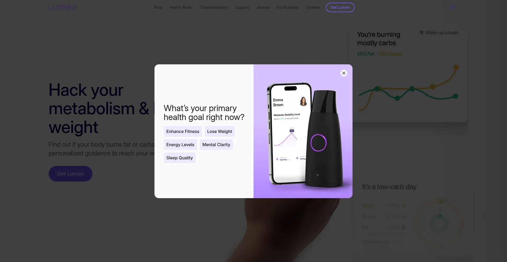 Lumen is the world’s first portable device to measure track and analyze your metabolism. See if your body is using fats or carbs for fuel in a single breath.