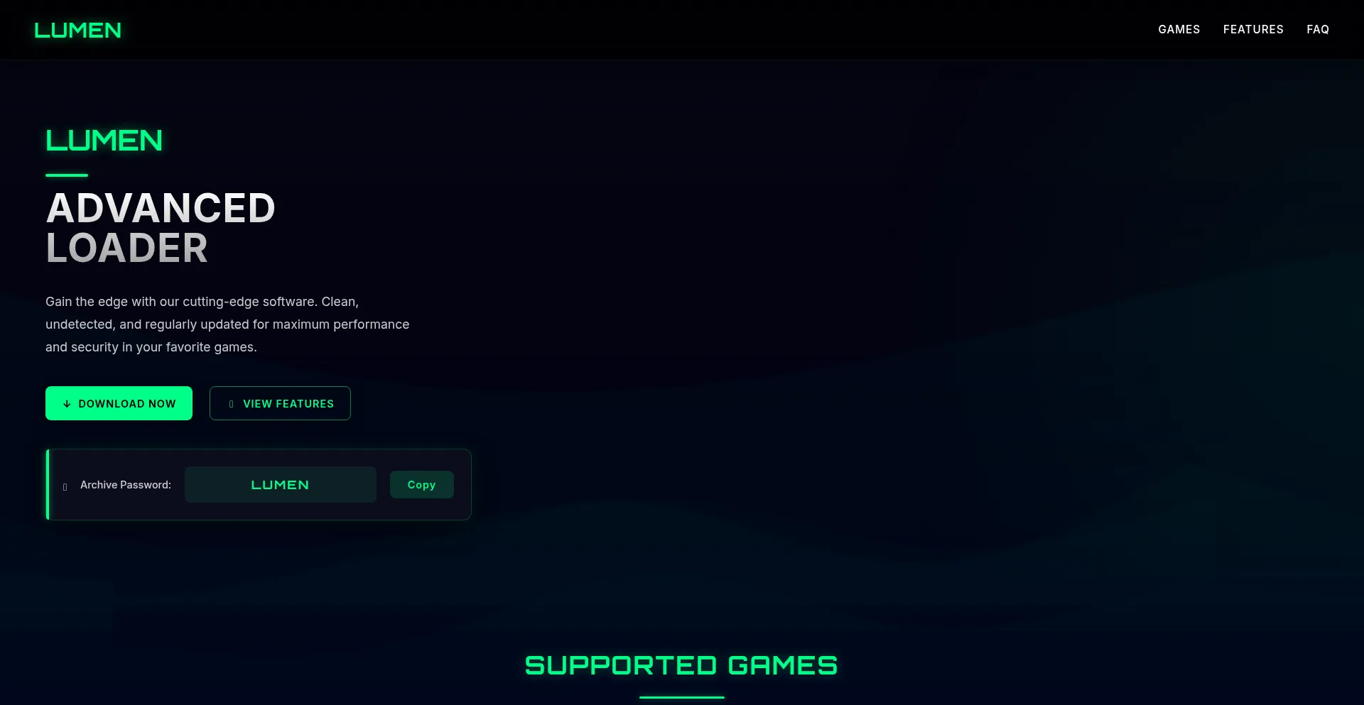 LUMEN - Advanced Loader for your favorite games. Clean, undetected, and regularly updated software with advanced features.