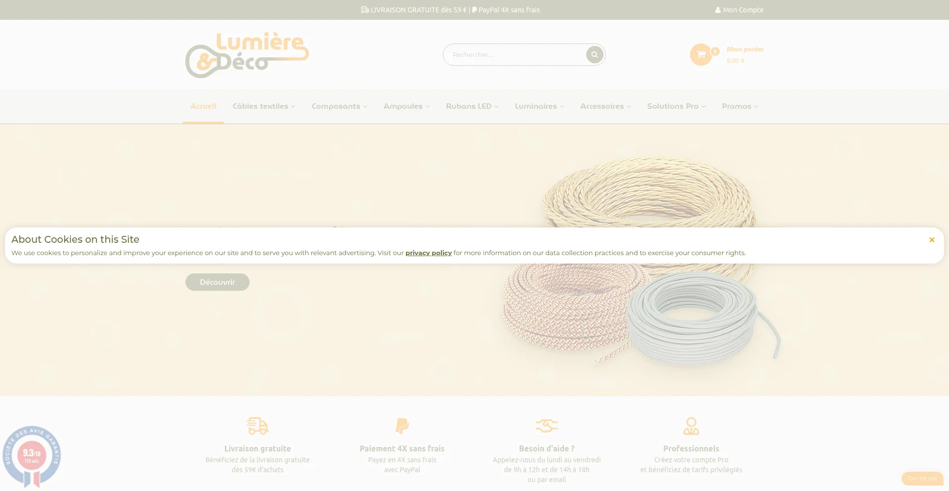 该网站实现符合GDPR或CCPA等隐私法规的cookie同意机制。这表明 lumiere-et-deco.com 遵守数据保护标准并为用户提供对个人数据收集实践的控制。