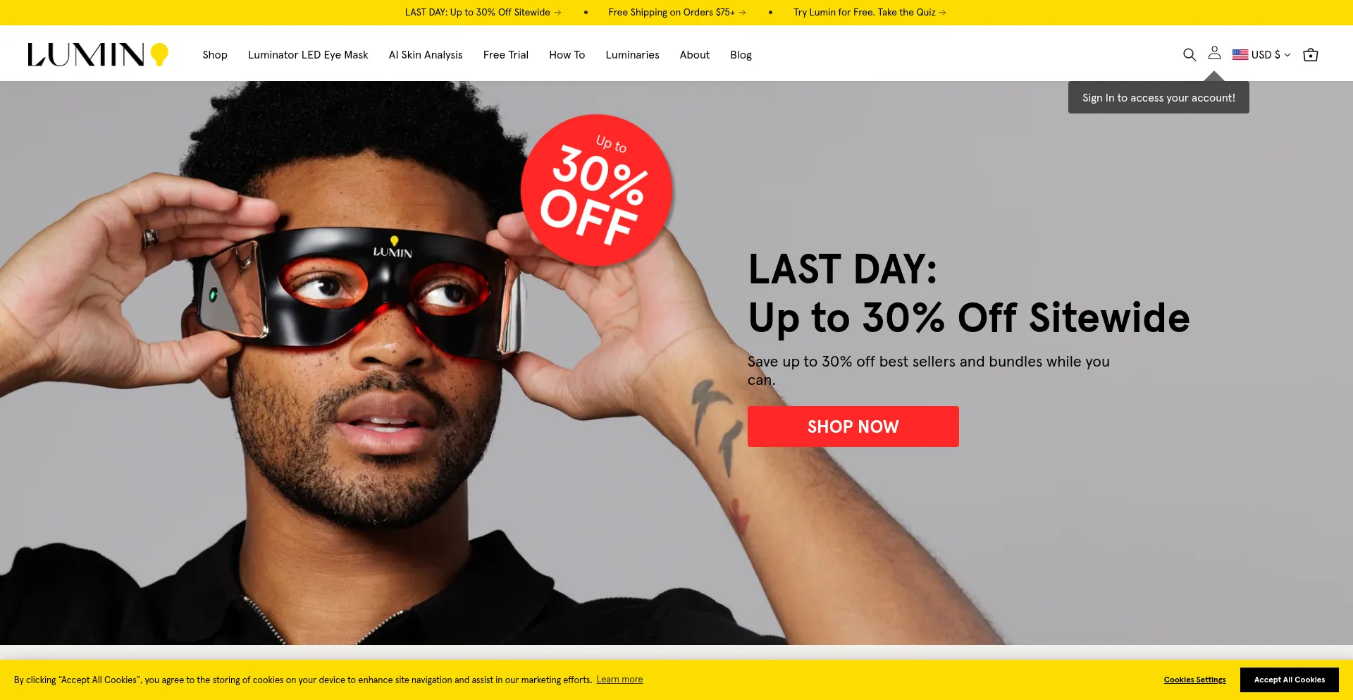 该网站实现符合GDPR或CCPA等隐私法规的cookie同意机制。这表明 luminskin.com 遵守数据保护标准并为用户提供对个人数据收集实践的控制。