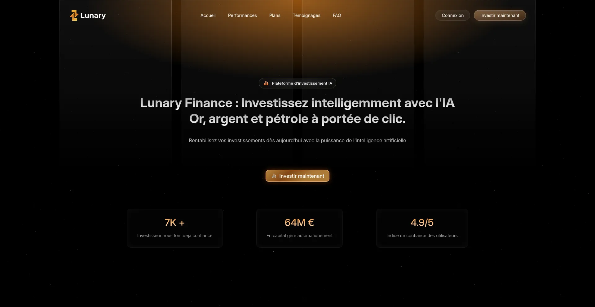 Lunary Finance - Investissement Intelligent IA | Trading Automatique Or, Argent, Pétrole