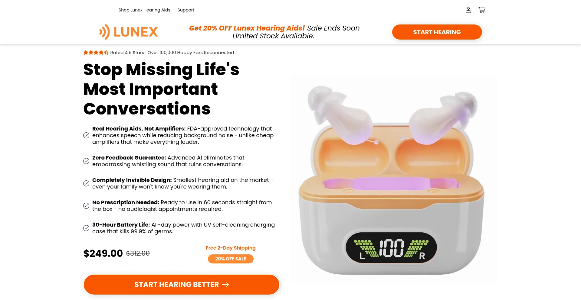 Lunex Hearing offers advanced OTC hearing aids designed for clarity, comfort, and affordability. Invisible design, AI sound chip, tinnitus relief, 45-day trial, and free 2-day s...