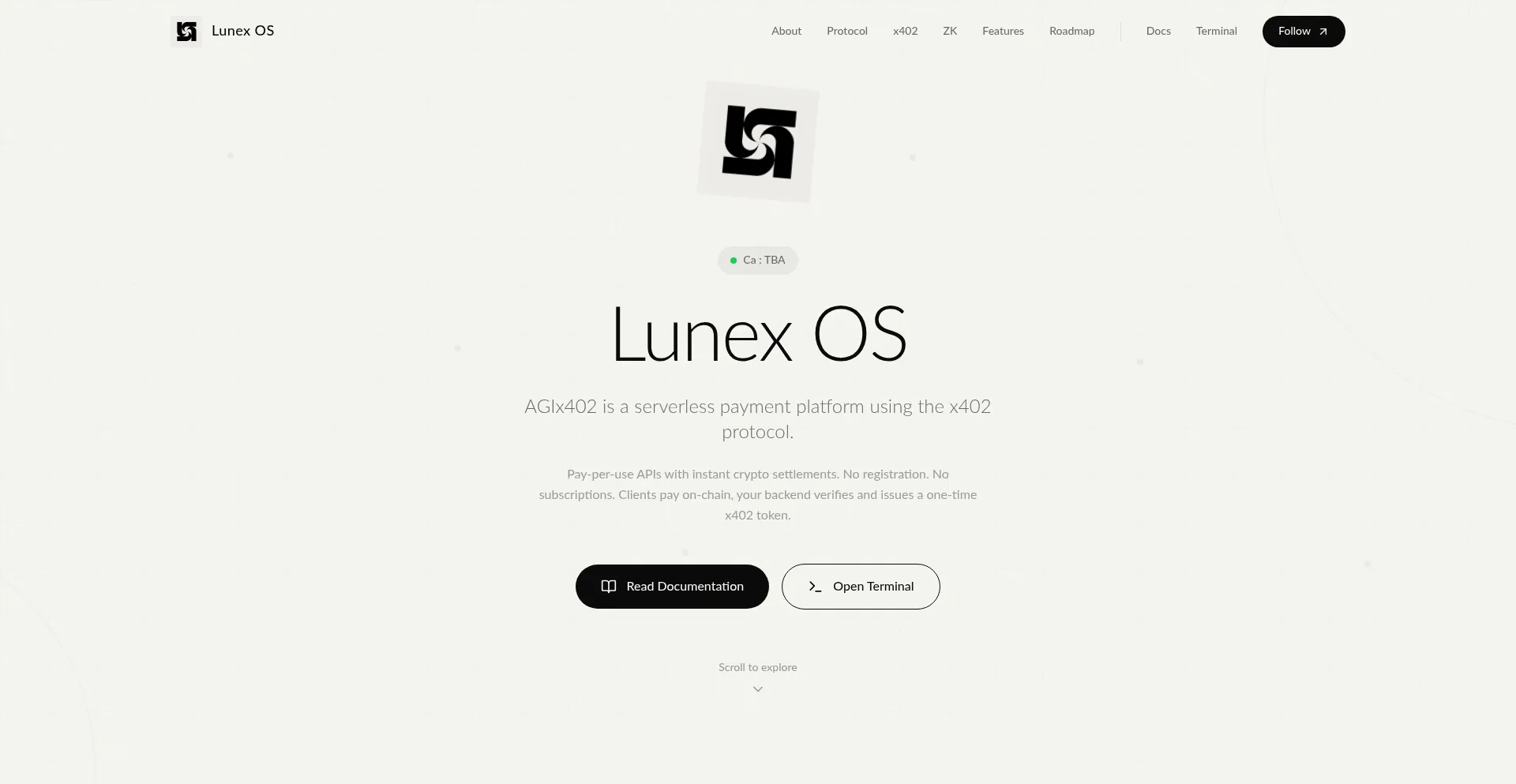 Lunex OS | AGIx402 Serverless Payment Protocol