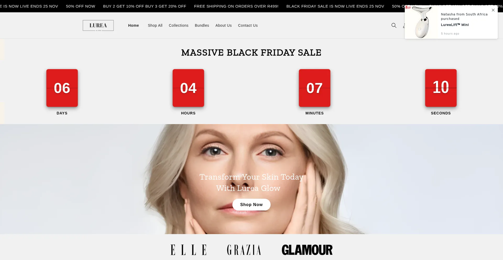 网站上存在社交媒体链接表明 lureaglow.co.za 在社交媒体上维护官方账户,这是可信度和参与度的积极信号。