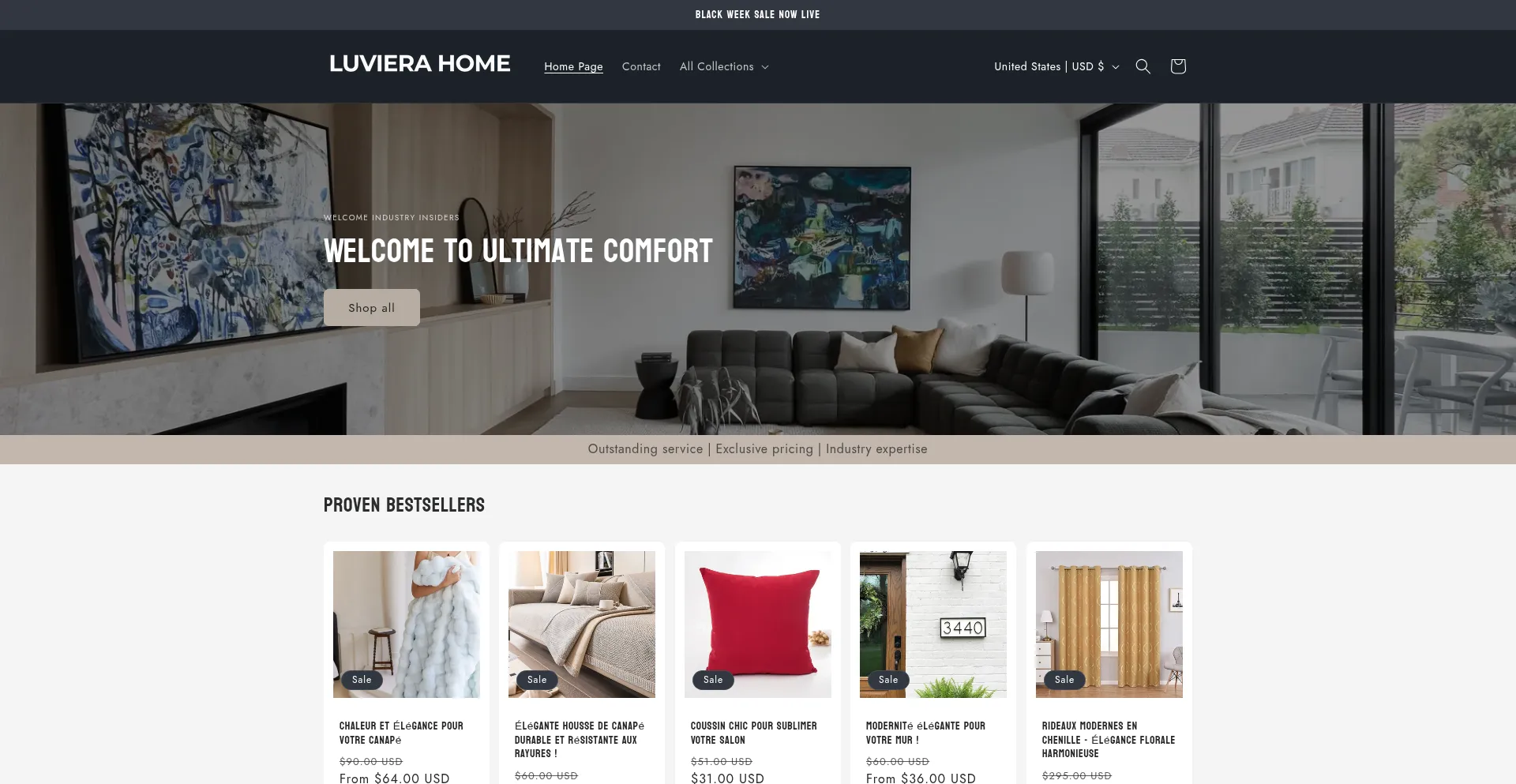 分析表明 luvierahome.com 作为电子商务平台运营,促进商品或服务的在线交易。该网站实现了购物车功能、支付处理系统和产品目录功能,这些是商业零售运营的典型特征。