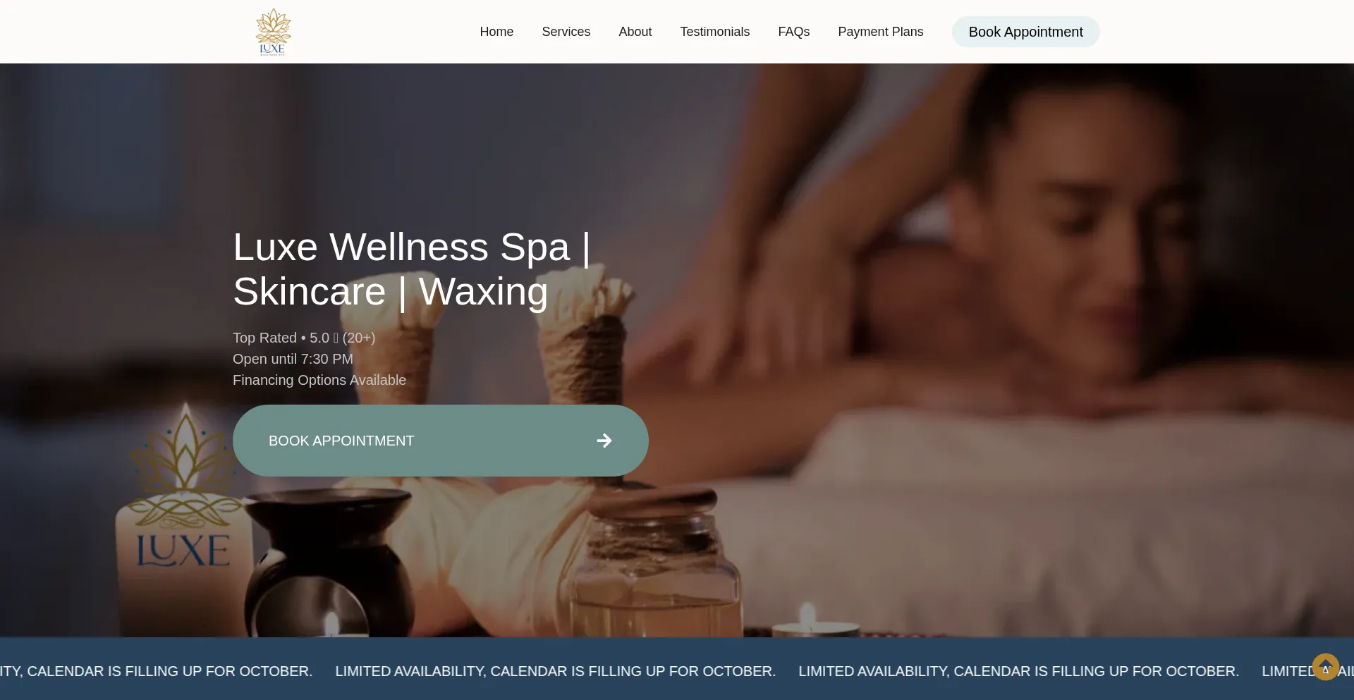 LIMITED AVAILABILITY, CALENDAR IS FILLING UP FOR OCTOBER.