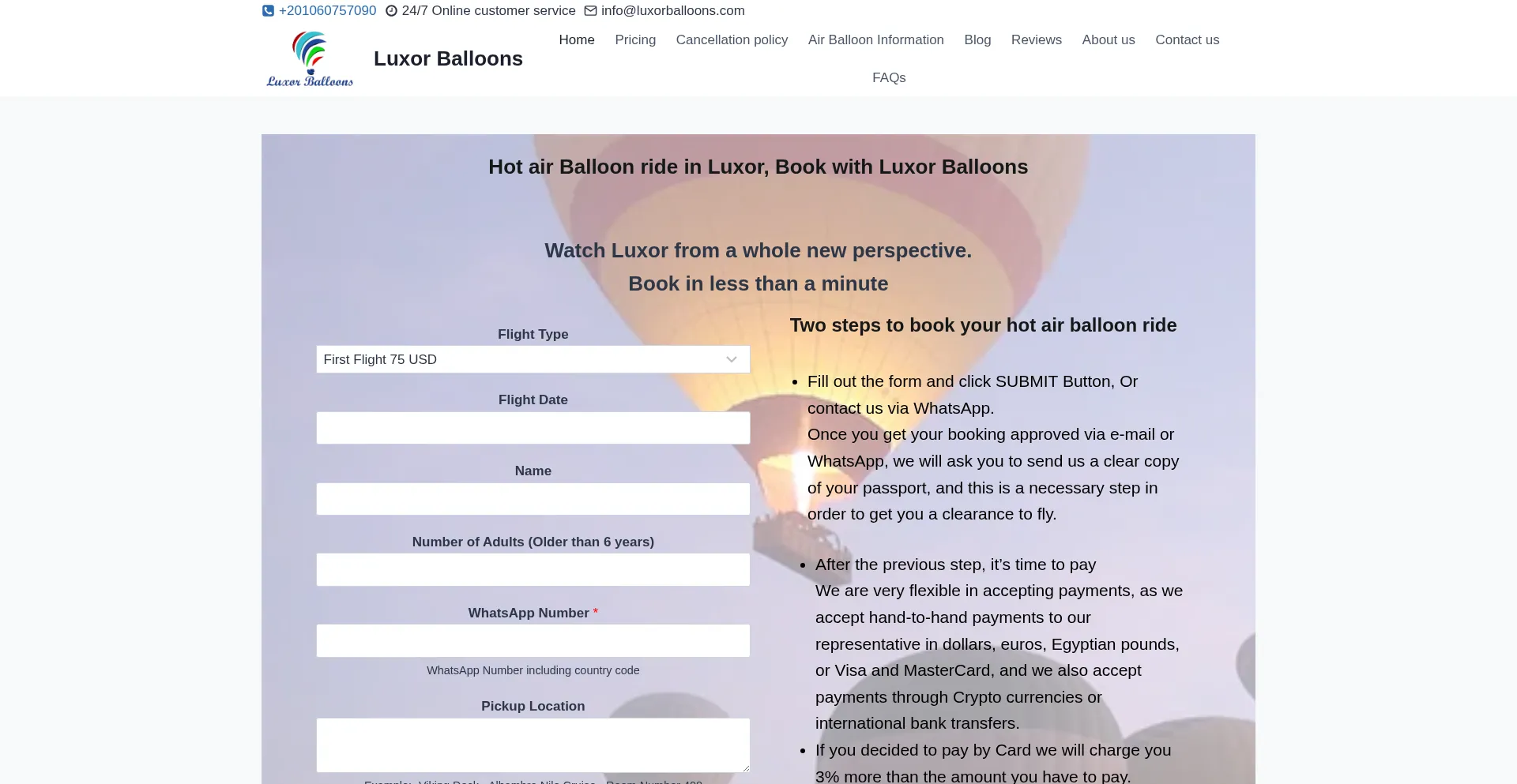 Elevate your adventure with hot air balloons in Luxor, Egypt. Luxor Balloons is providing customers with the ultimate hot air balloon rides.