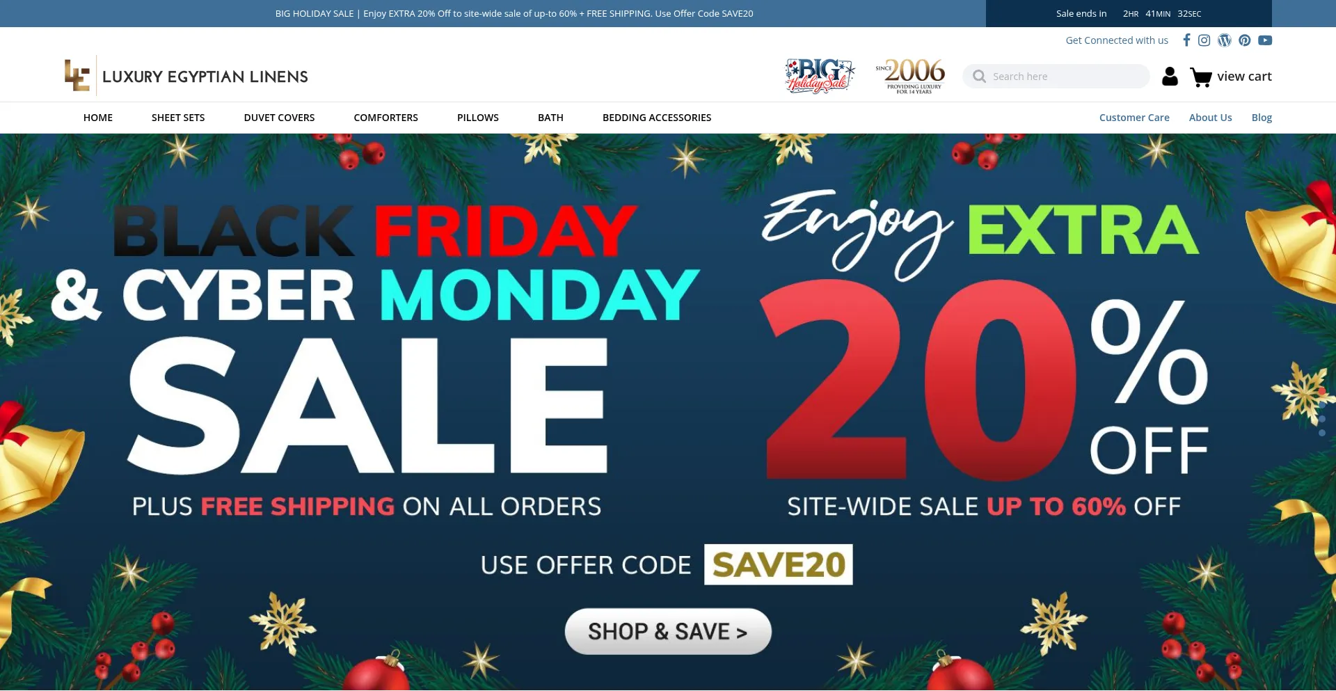 网站上存在社交媒体链接表明 luxuryegyptianlinens.com 在社交媒体上维护官方账户,这是可信度和参与度的积极信号。