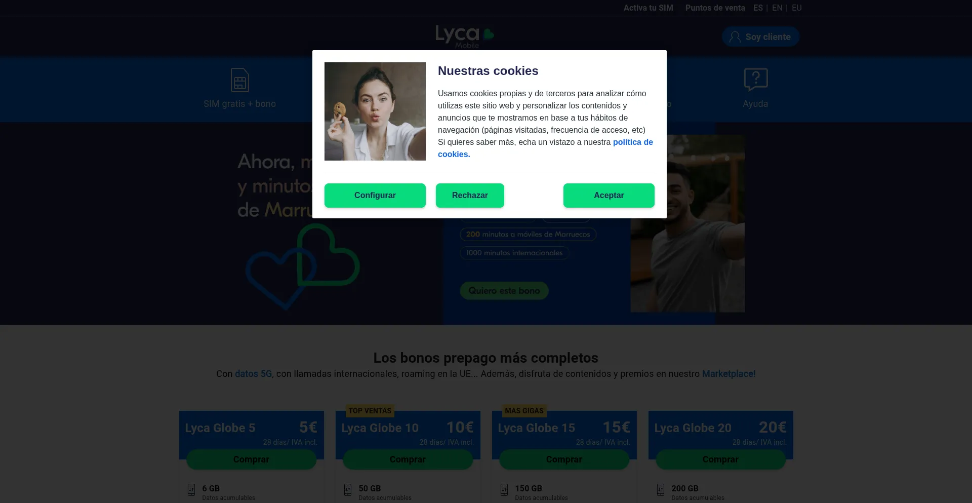 该网站实现符合GDPR或CCPA等隐私法规的cookie同意机制。这表明 lycamobile.es 遵守数据保护标准并为用户提供对个人数据收集实践的控制。