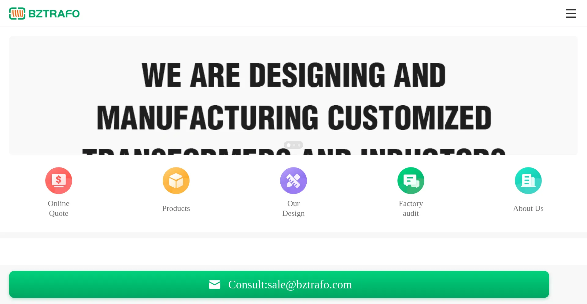 网站上存在社交媒体链接表明 m.bztrafo.com 在社交媒体上维护官方账户,这是可信度和参与度的积极信号。