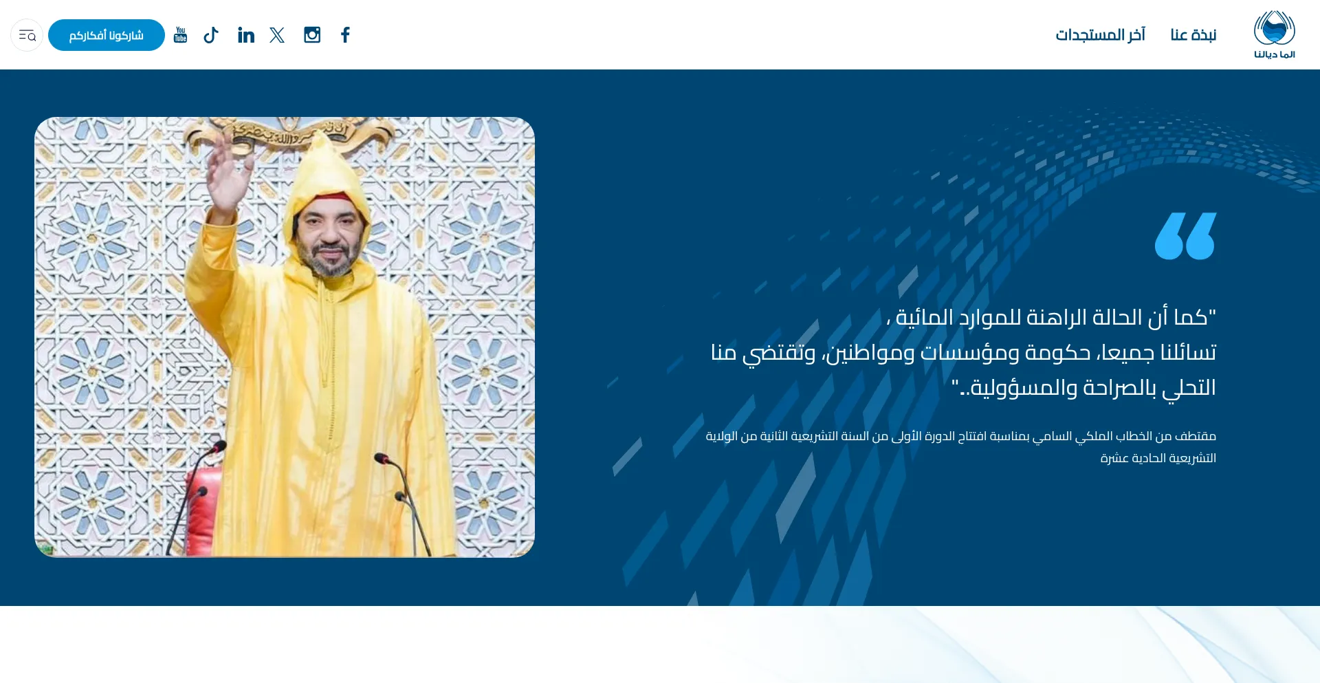 网站上存在社交媒体链接表明 maadialna.ma 在社交媒体上维护官方账户,这是可信度和参与度的积极信号。