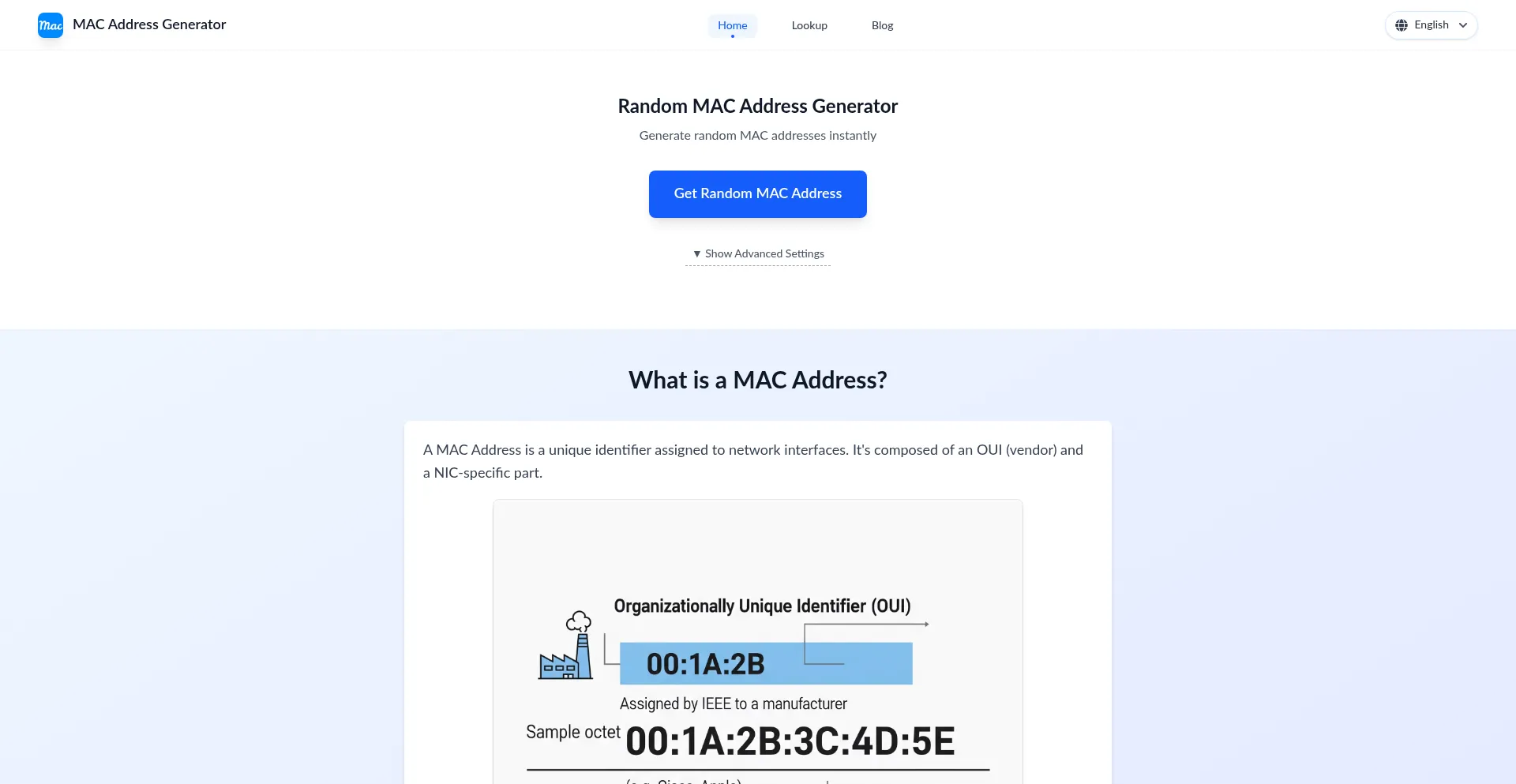 A reliable and free online tool to generate random or custom MAC addresses. Supports multiple formats, vendor prefixes (OUI), and bulk generation. Secure and client-side.