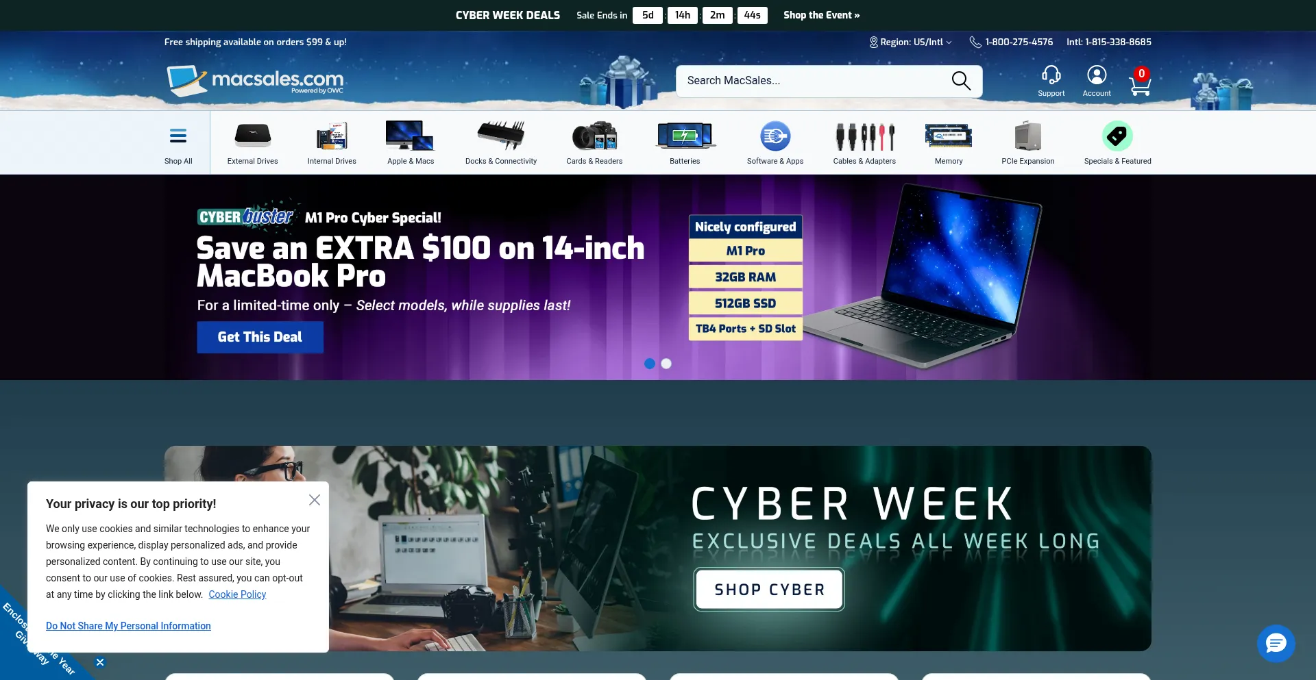 该网站实现符合GDPR或CCPA等隐私法规的cookie同意机制。这表明 macsales.com 遵守数据保护标准并为用户提供对个人数据收集实践的控制。