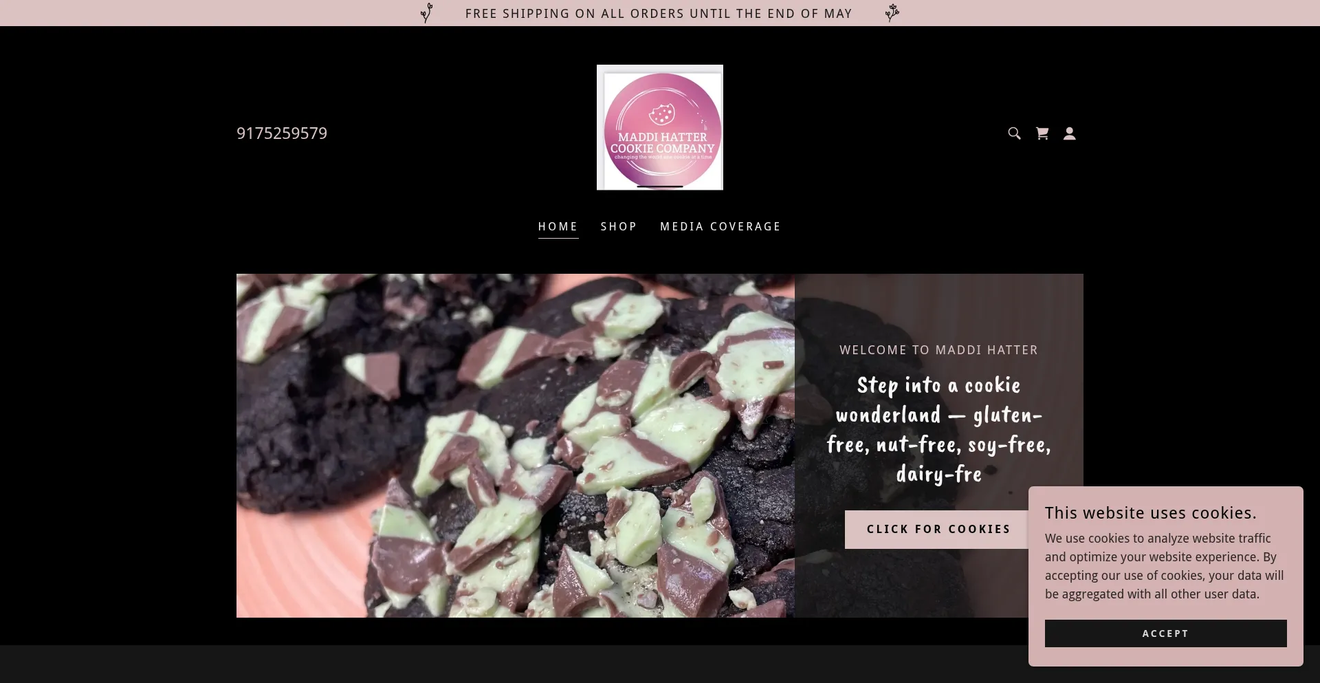 该网站实现符合GDPR或CCPA等隐私法规的cookie同意机制。这表明 maddihattercookiecompany.com 遵守数据保护标准并为用户提供对个人数据收集实践的控制。
