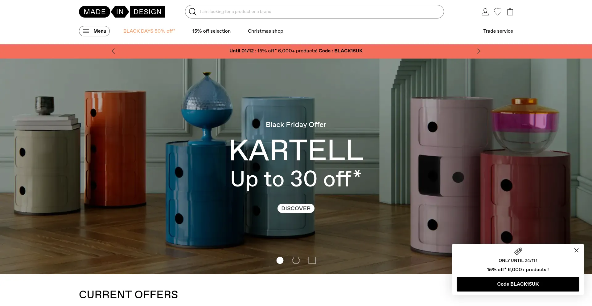 该网站利用流行产品名称和品牌来吸引流量并产生用户兴趣。这些产品可能通过促销活动或折扣策略提供,旨在增加 madeindesign.co.uk 的访客参与度和转化率。
