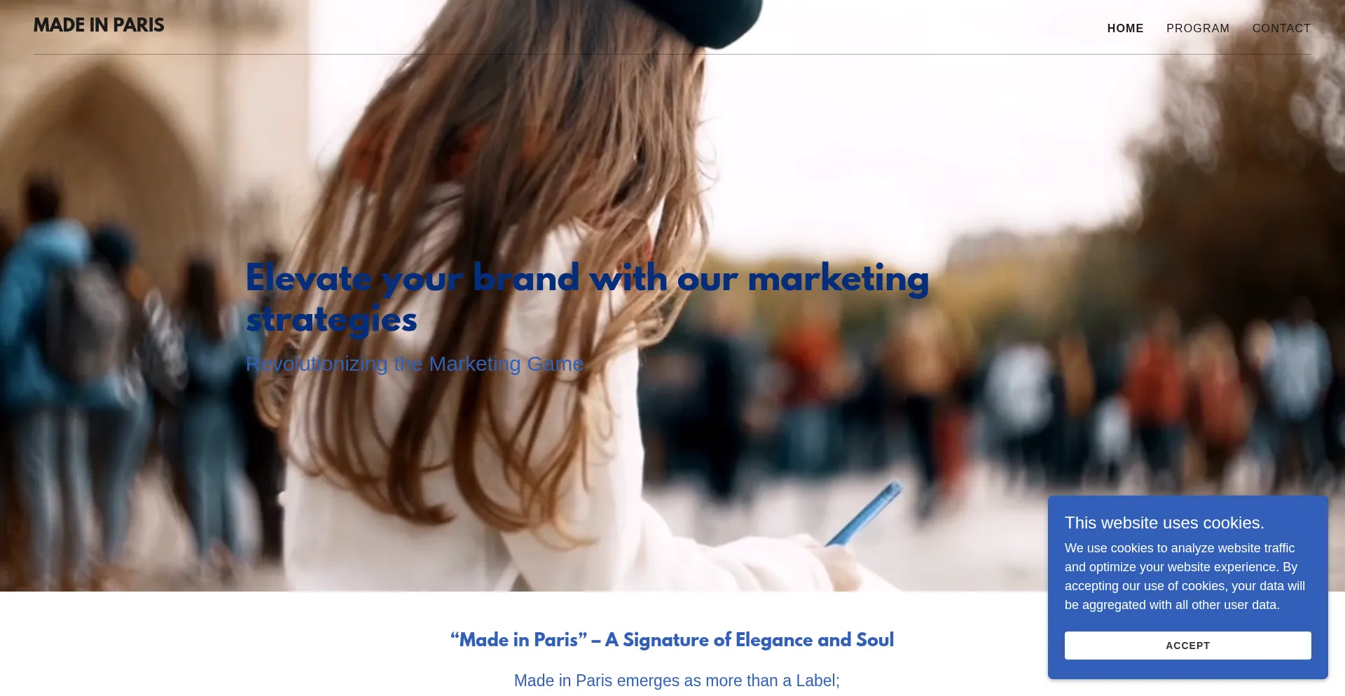该网站实现符合GDPR或CCPA等隐私法规的cookie同意机制。这表明 madeinparis.com 遵守数据保护标准并为用户提供对个人数据收集实践的控制。