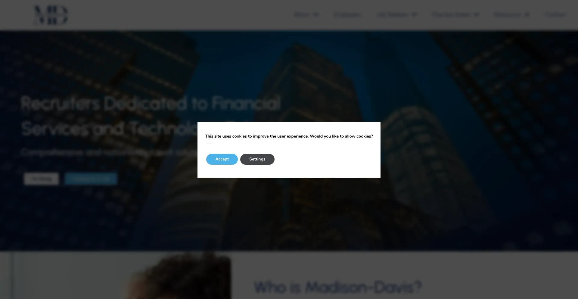 该网站实现符合GDPR或CCPA等隐私法规的cookie同意机制。这表明 madisondavis.com 遵守数据保护标准并为用户提供对个人数据收集实践的控制。