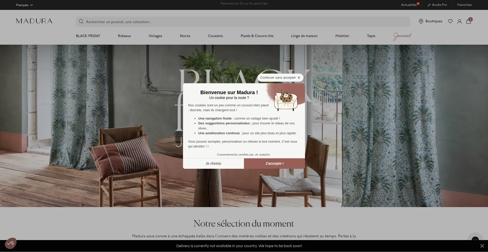 Toutes les tendances déco sont chez Madura. Découvrez nos nouvelles collections de rideaux, voilages, stores, linge de lit, linge de table, coussins et mobilier.