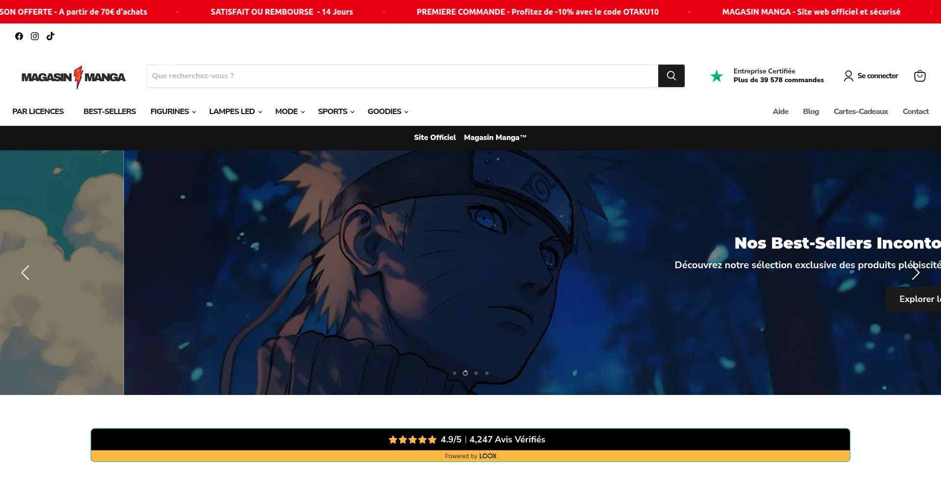 网站上存在社交媒体链接表明 magasinmanga.fr 在社交媒体上维护官方账户,这是可信度和参与度的积极信号。