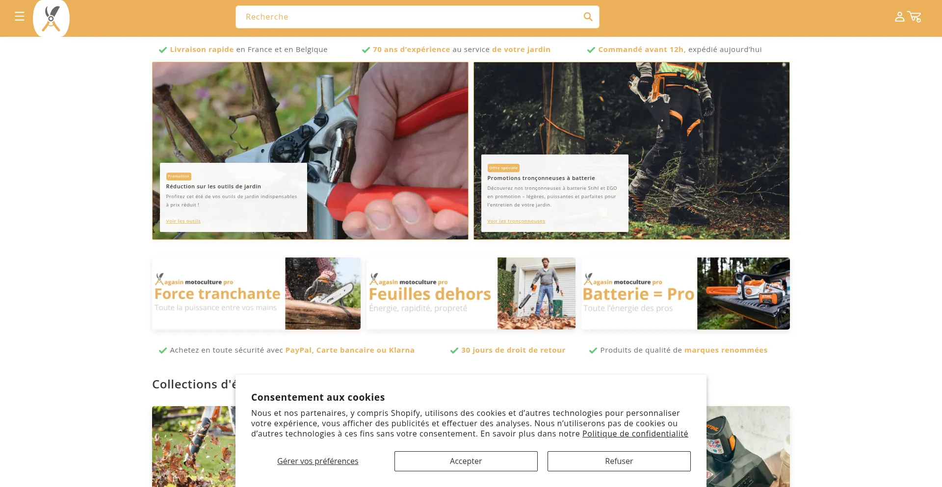 该网站实现符合GDPR或CCPA等隐私法规的cookie同意机制。这表明 magasinmotoculture.fr 遵守数据保护标准并为用户提供对个人数据收集实践的控制。