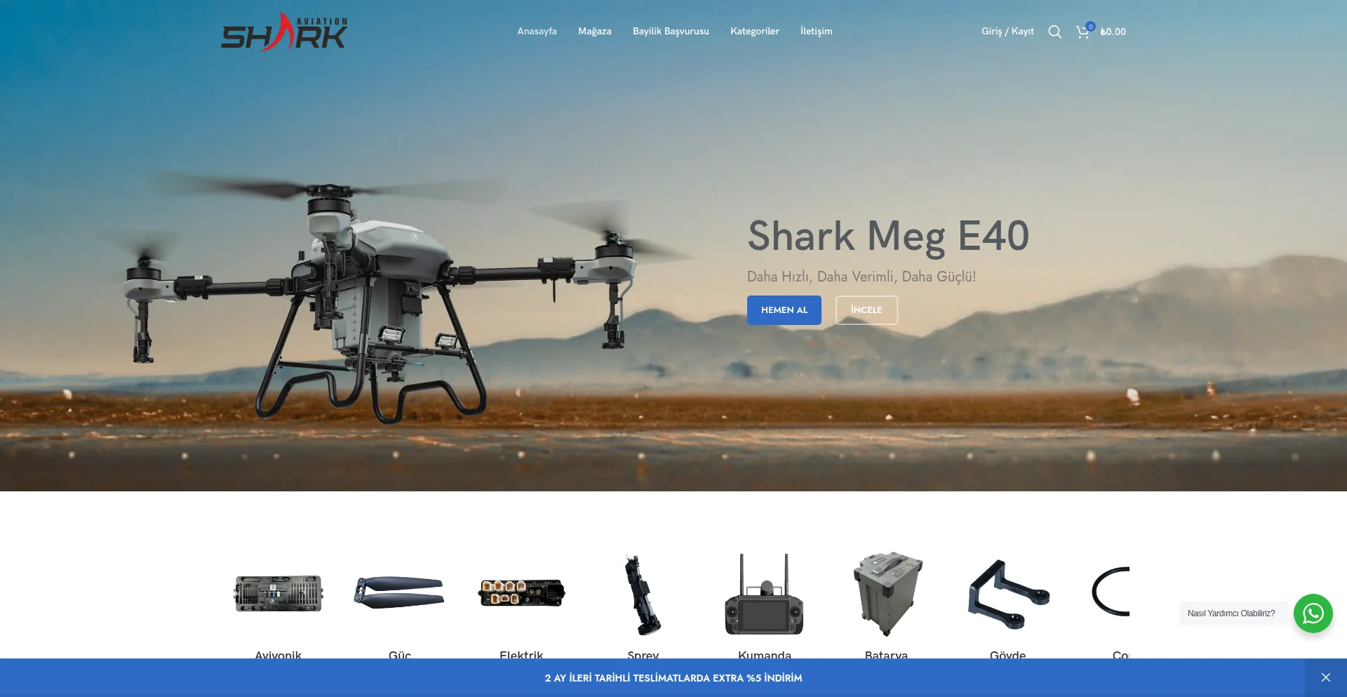 Shark Aviation ile tarımsal ilaçlama dronlarında teknolojiye öncülük edin. 40 litre kapasiteli, otonom özelliklere sahip tarım dronlarıyla verimliliği artırın