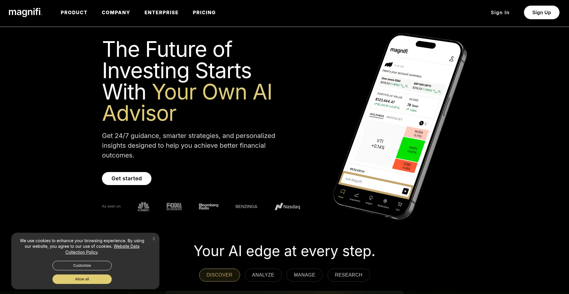 该网站实现符合GDPR或CCPA等隐私法规的cookie同意机制。这表明 magnifi.com 遵守数据保护标准并为用户提供对个人数据收集实践的控制。
