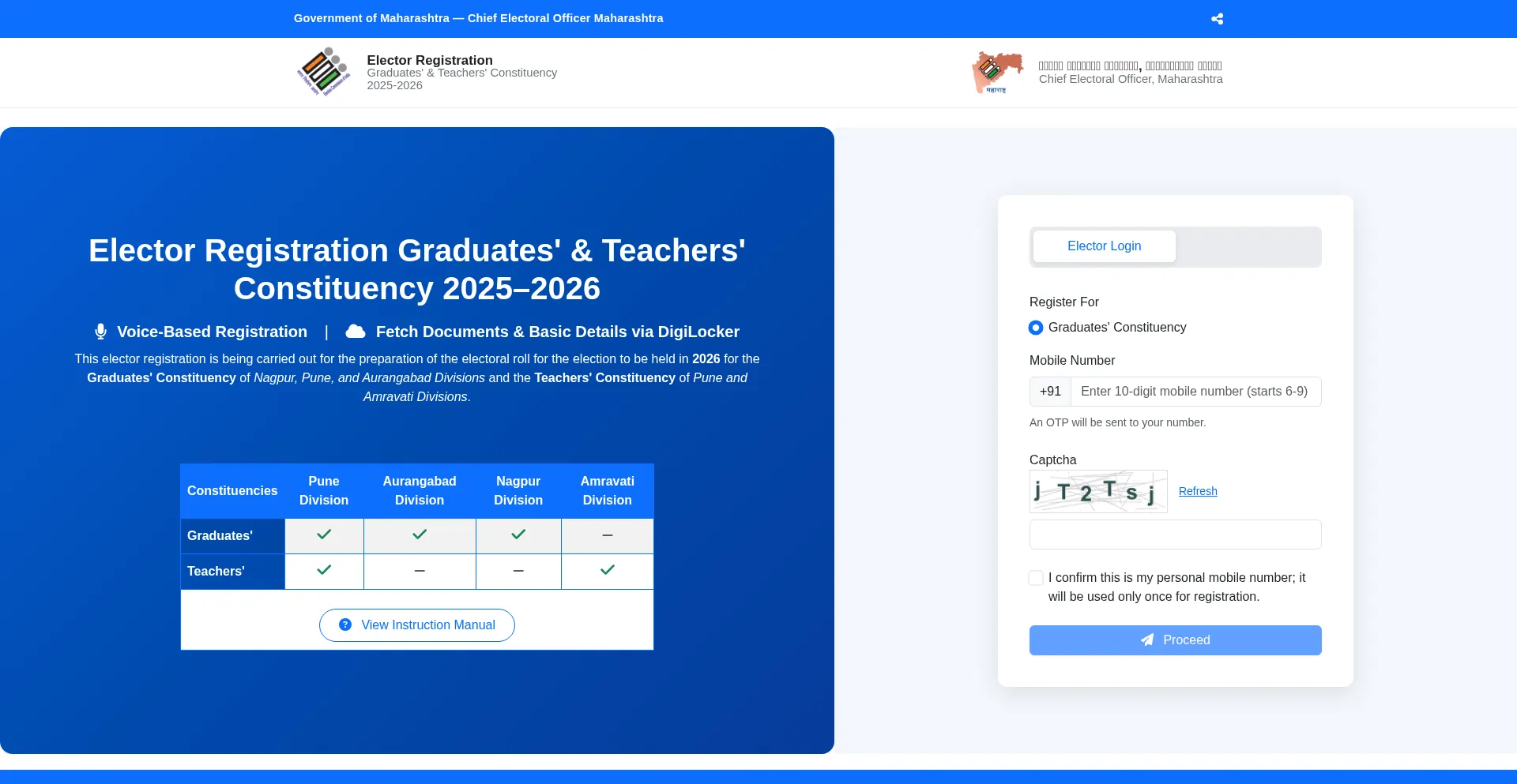 该网站实现数据收集表单,请求个人信息,包括姓名、电子邮件地址、电话号码或其他敏感详细信息。用户应验证 mahaelection.gov.in 的合法性并在提交个人数据前查看隐私政策。