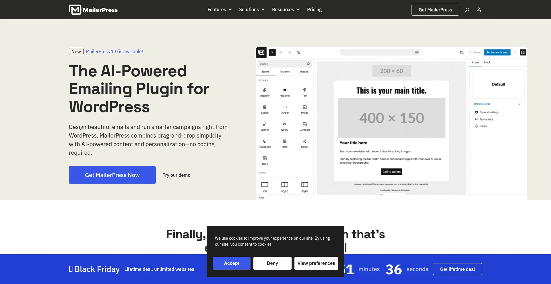 Design beautiful emails and run smarter campaigns right from WordPress. MailerPress combines drag-and-drop simplicity with AI-powered content and personalization—no coding req...