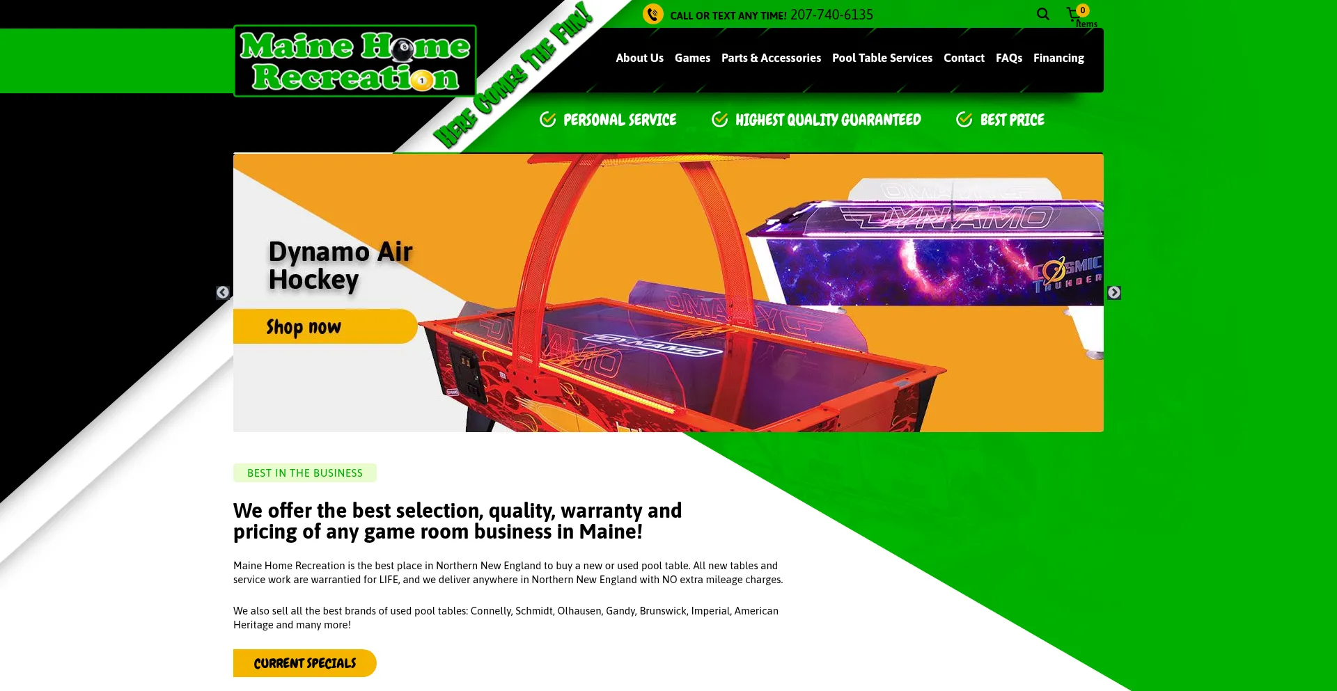 Maine Home Recreation is the best place in New England to buy a new or used pool table, arcade /pinball machine and game room accessories.