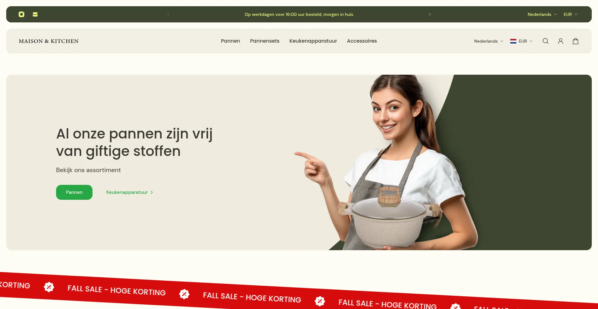网站 maisonandkitchen.nl 使用免费电子商务平台解决方案,这可能表明成本意识运营,但也可能暗示与企业级解决方案相比在安全功能、客户支持或高级功能方面的限制。