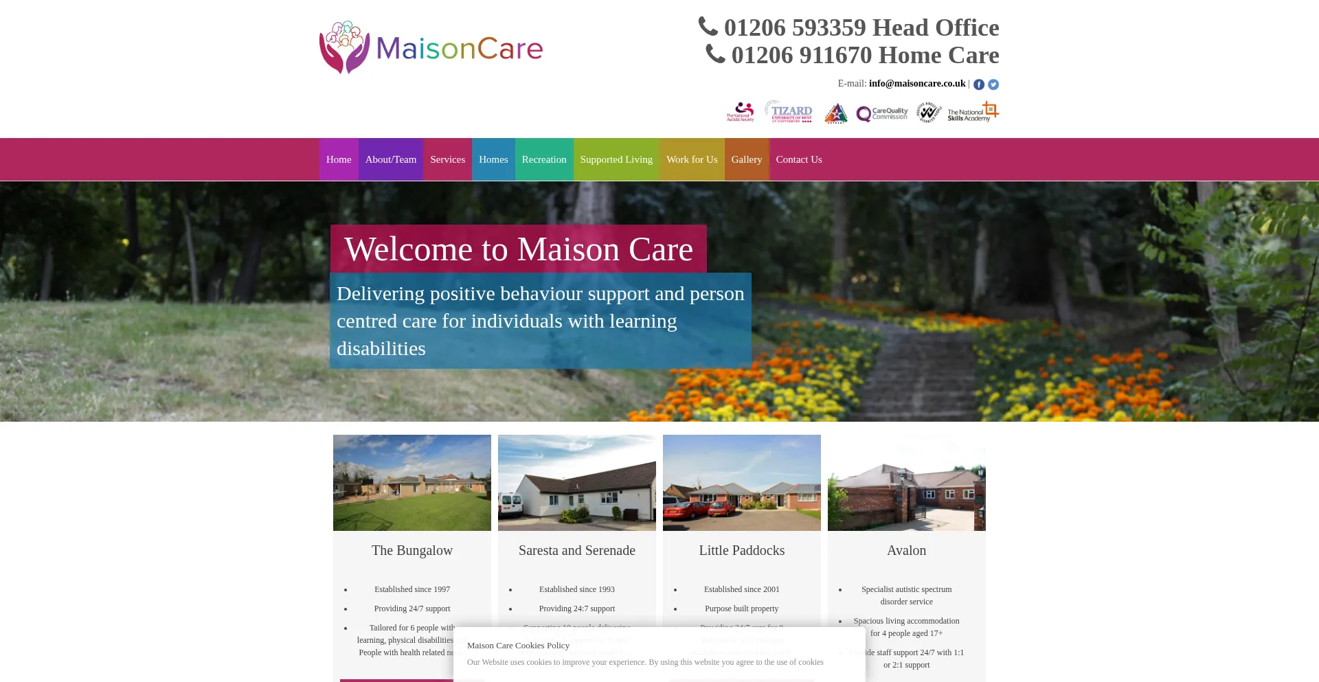 网站 maisoncare.co.uk 使用 React 构建,这是一个用于创建交互式用户界面的流行 JavaScript 库。