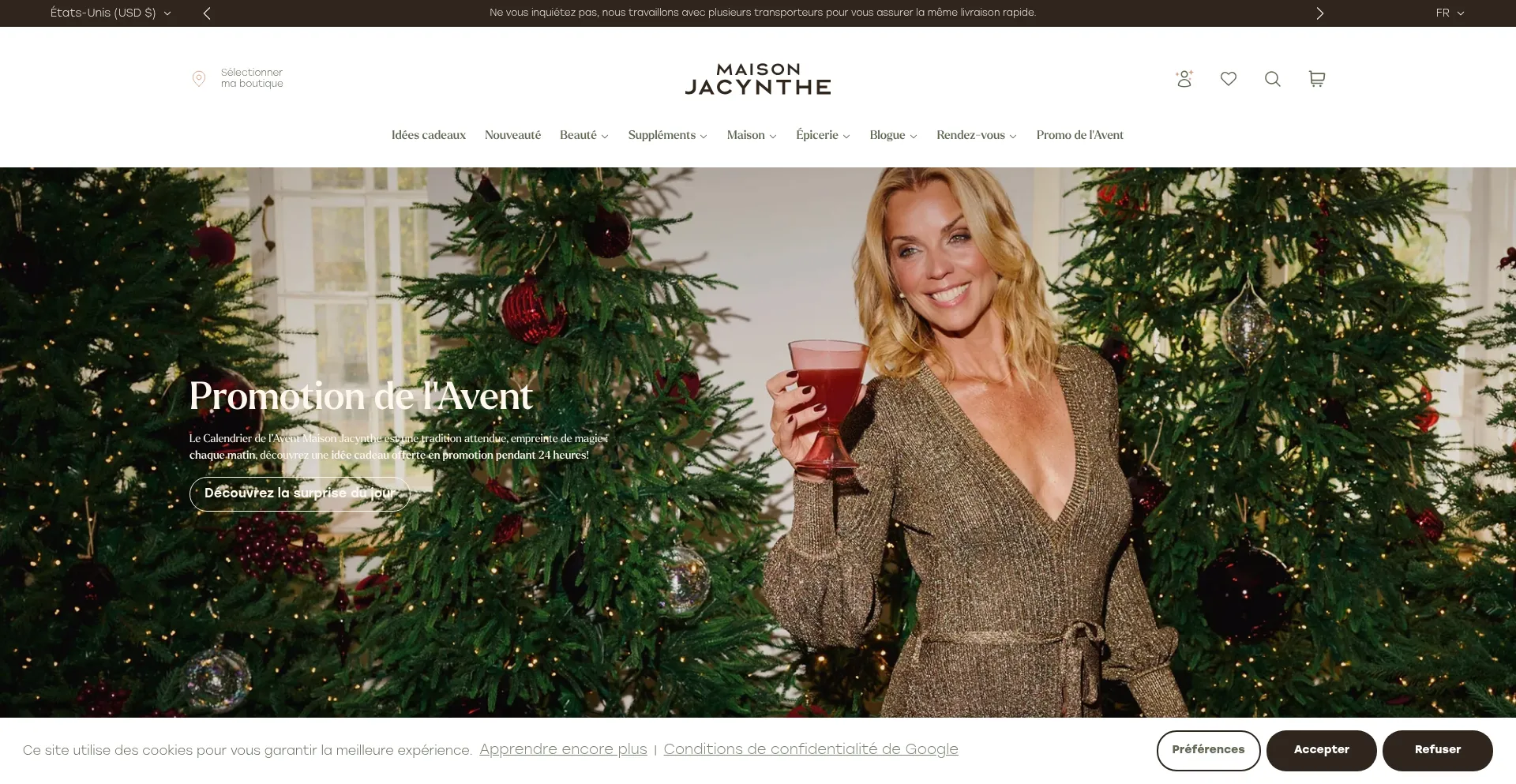 该网站实现符合GDPR或CCPA等隐私法规的cookie同意机制。这表明 maisonjacynthe.ca 遵守数据保护标准并为用户提供对个人数据收集实践的控制。