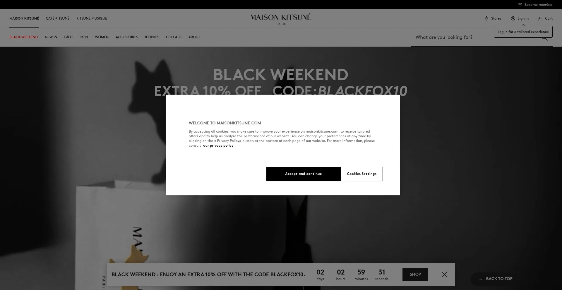 该网站实现符合GDPR或CCPA等隐私法规的cookie同意机制。这表明 maisonkitsune.com 遵守数据保护标准并为用户提供对个人数据收集实践的控制。
