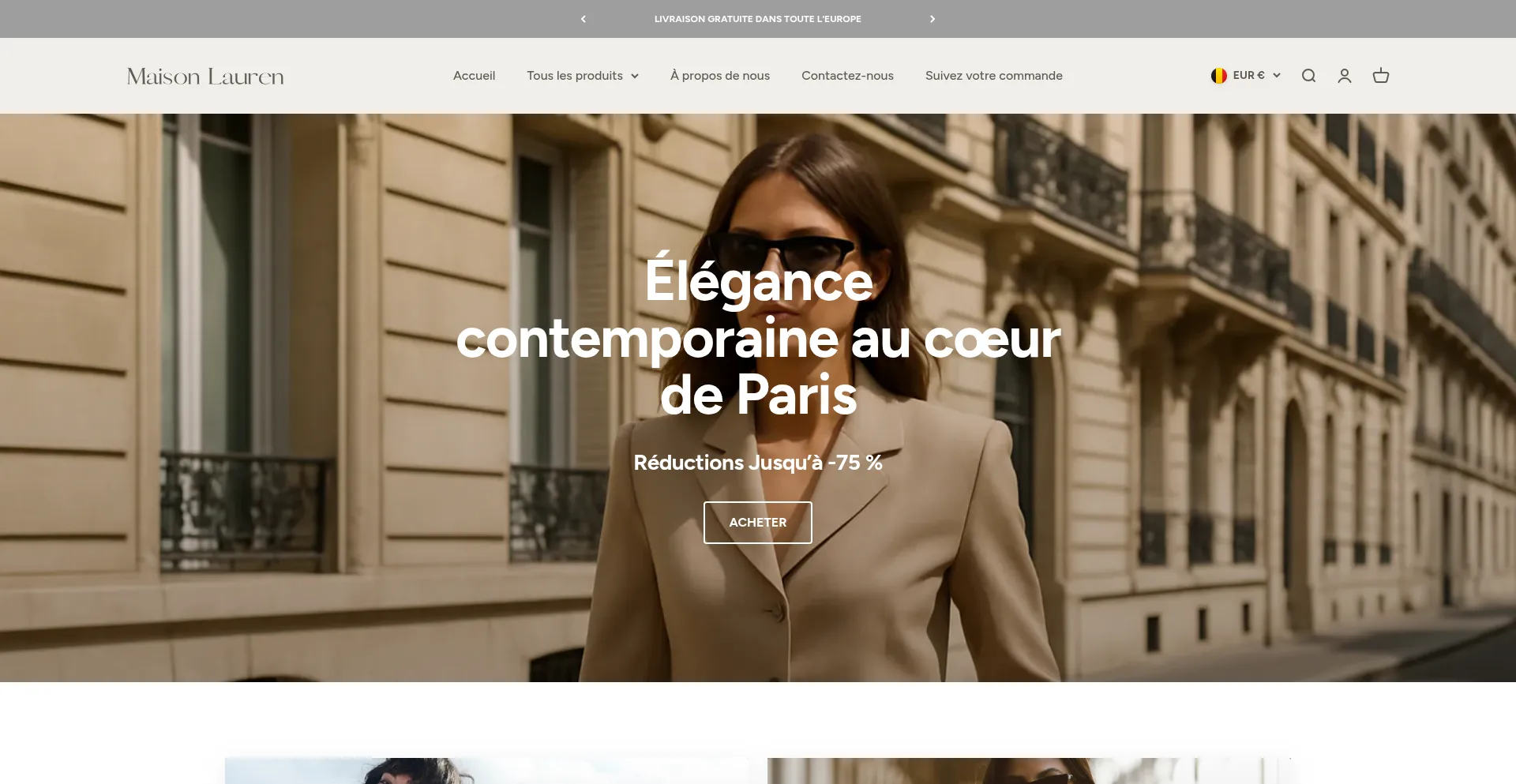 分析表明 maisonlauren.fr 作为电子商务平台运营,促进商品或服务的在线交易。该网站实现了购物车功能、支付处理系统和产品目录功能,这些是商业零售运营的典型特征。