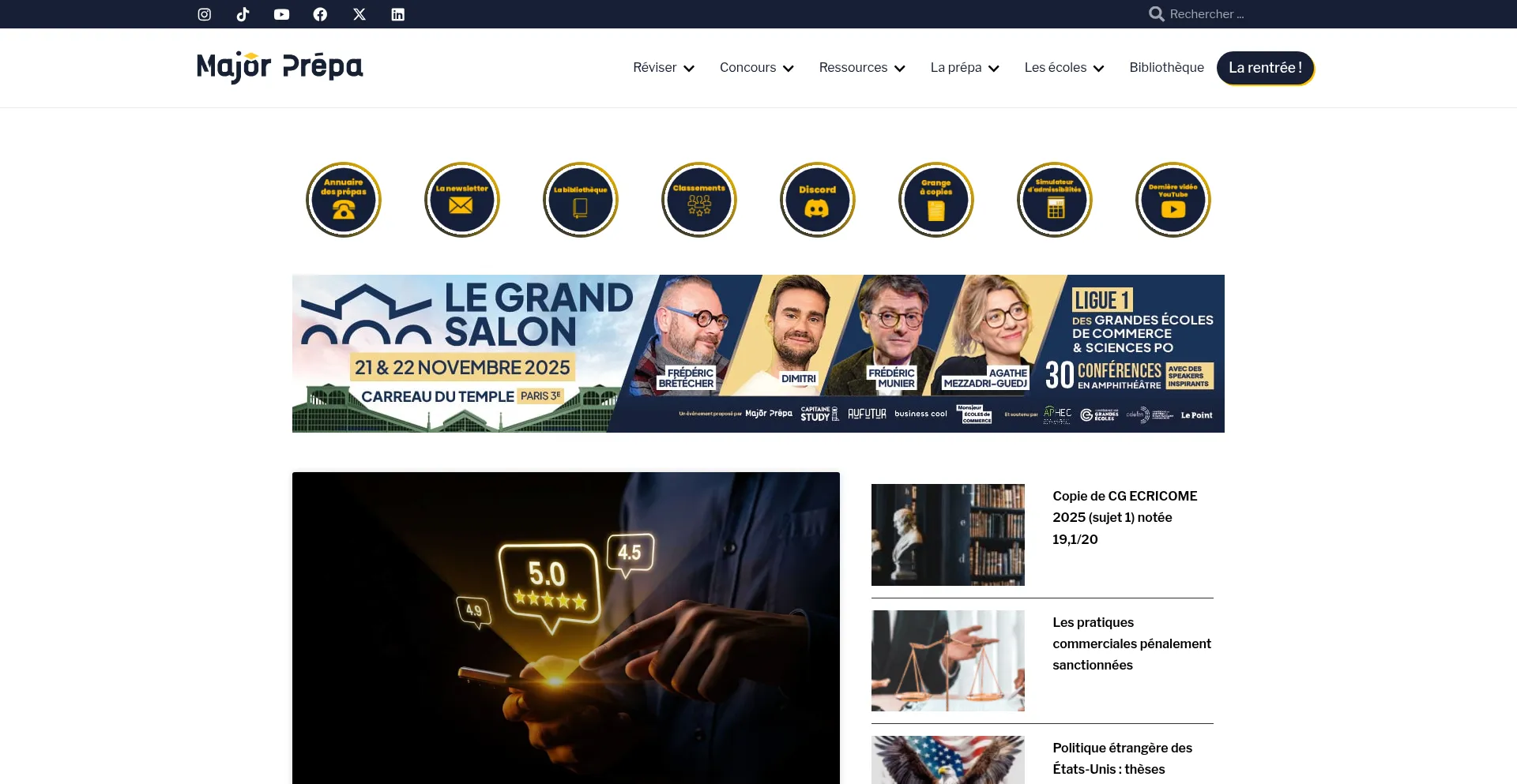 网站上存在社交媒体链接表明 major-prepa.com 在社交媒体上维护官方账户,这是可信度和参与度的积极信号。