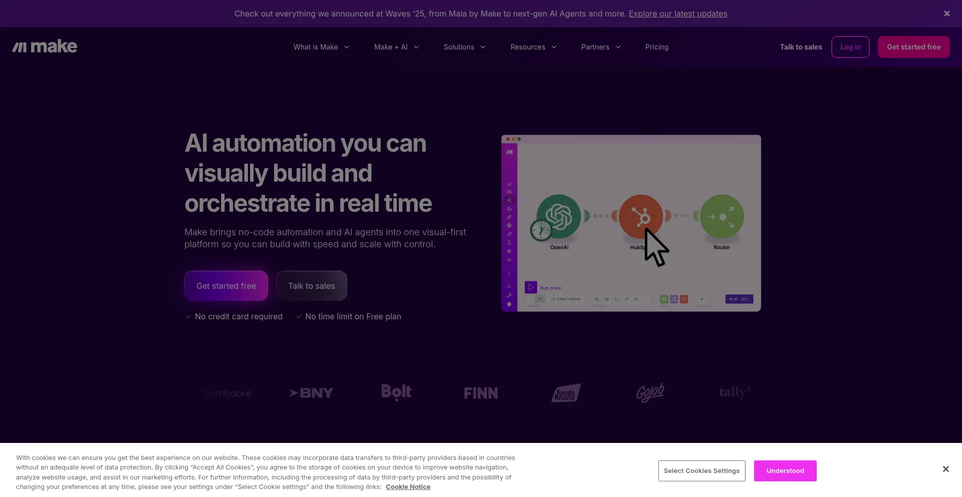 Automate your work. Make allows you to visually build, scale and automate AI and agentic workflows. User friendly no-code integration tool. Try it now for free!