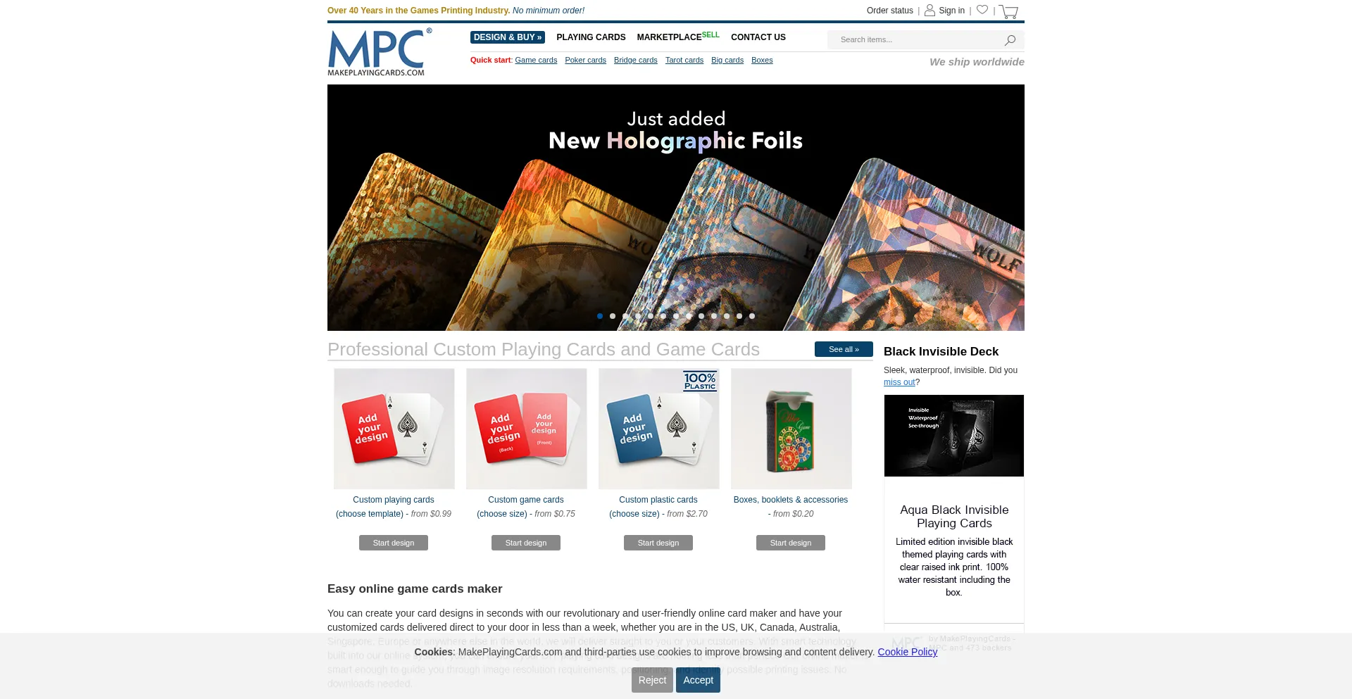 该网站实现符合GDPR或CCPA等隐私法规的cookie同意机制。这表明 makeplayingcards.com 遵守数据保护标准并为用户提供对个人数据收集实践的控制。